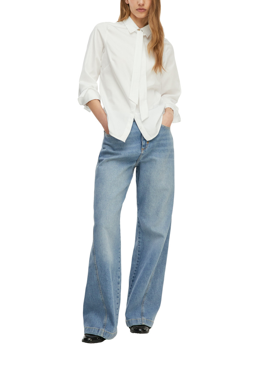 Diese taillierte Bluse aus hochwertiger Stretch-Popeline vereint klassische Eleganz mit modernem Charme. Das abnehmbare Krawatten-Detail verleiht ihr eine feminine Note und macht sie vielseitig kombinierbar. Der leichte, feine Stoff mit elastischem Anteil garantiert höchsten Tragekomfort. Die Langarm-Ausführung mit Manschetten und der abgerundete Saum sorgen für eine cleane Silhouette. Perfekt für Business-Anlässe, festliche Events oder lässige Casual-Looks – sie lässt sich mühelos up- oder downdressen.