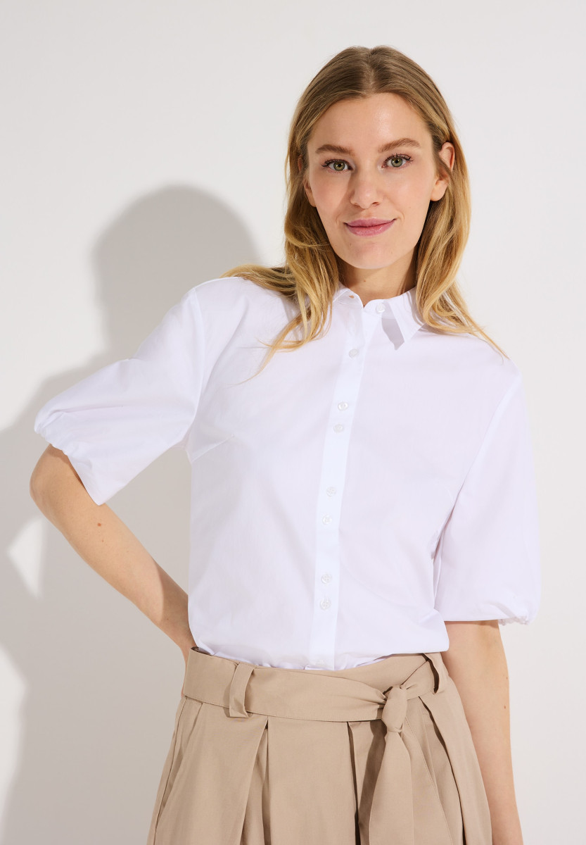 Diese Bluse von MORE & MORE ist der perfekte Mix aus klassisch und trendy. Der cleane Look trifft auf angesagte Puffärmel und macht das Teil zu einem echten Style-Upgrade für Ihren Kleiderschrank. Die durchgehende Knopfleiste und der Hemdkragen sorgen für einen smarten Touch, während der lockere Schnitt für maximalen Komfort steht. Ob zur Jeans für den Alltag, zur Stoffhose fürs Office oder zum Rock für den City-Look – diese Bluse geht einfach immer.Lief.-Art-Nr: 61822493