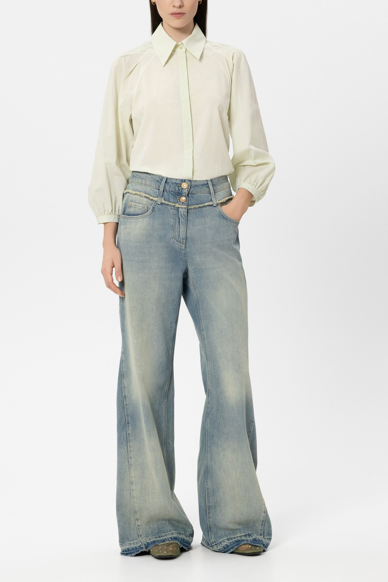Feminine Hemdbluse aus luftigem Baumwollvoile mit verdeckter Knopfleiste und voluminösen Ärmeln. Eine Rückenfalte unterstützt den legeren Sitz. Knöpfe: Perlmutt