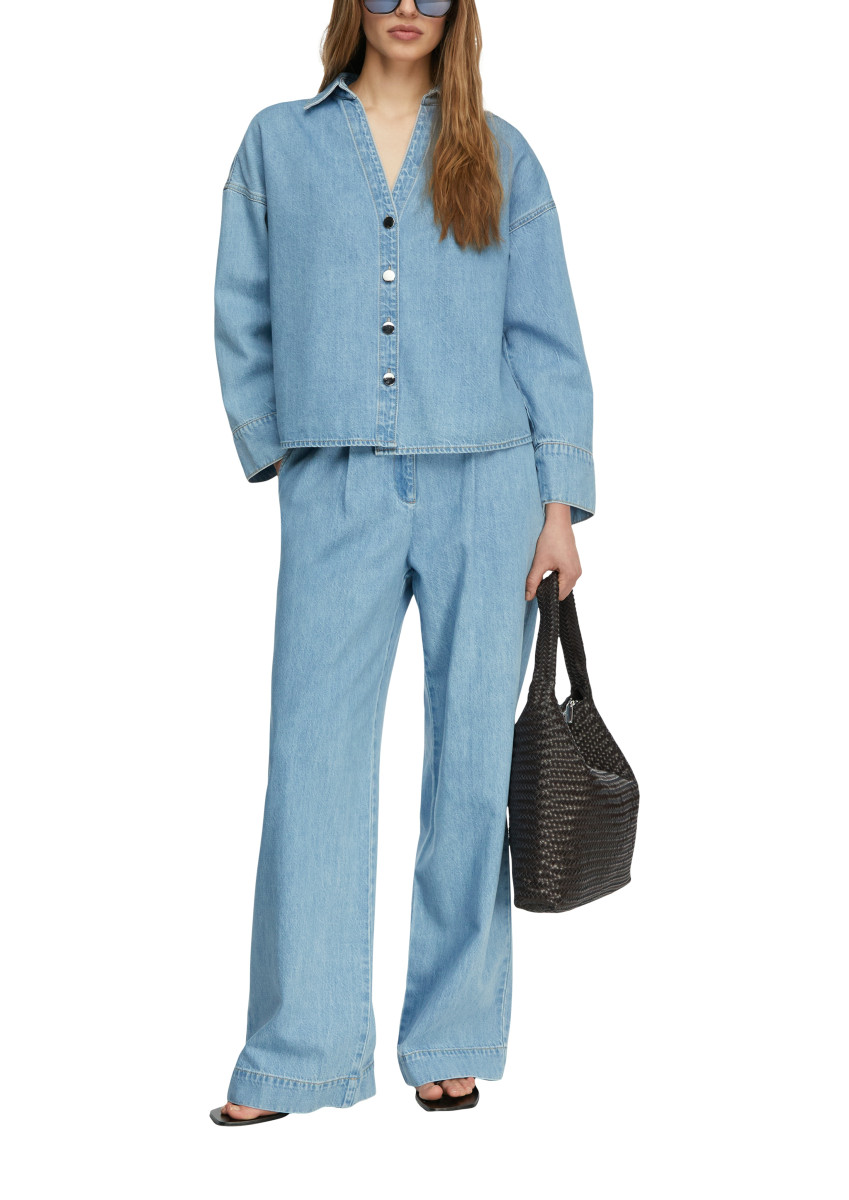 Das Lyocell-Denim-Shacket kommt mit klassischem Kragen und femininem V-Ausschnitt. Der Shacket-Schnitt verbindet die strukturierte Optik einer Jacke mit der Leichtigkeit einer Bluse und lässt sich vielseitig kombinieren. Liebevolle Details und eine klare Linienführung sorgen für einen modernen, gepflegten Look.Lief.-Art-Nr: 2177536