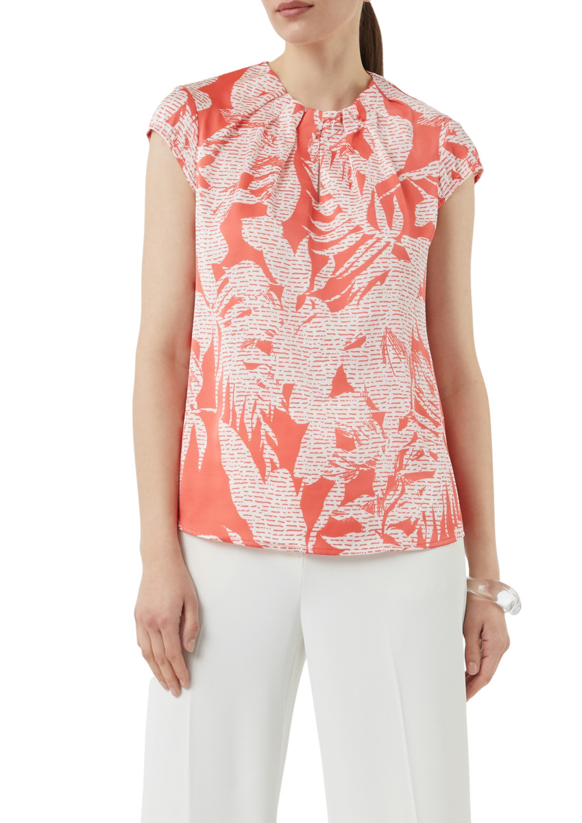 Satin-Eleganz mit Raffinesse: Diese gemusterte Bluse besticht durch ihre raffinierte Raffung und den luxuriösen Satin-Stoff. Der Regular Fit schmeichelt Ihrer Silhouette, während die Kurzärmel sommerliche Frische versprechen. Perfekt für den Büroalltag oder einen stilvollen Abend – kombinieren Sie sie mit einer taillierten Hose für einen unwiderstehlichen Look.Lief.-Art-Nr: 2168474