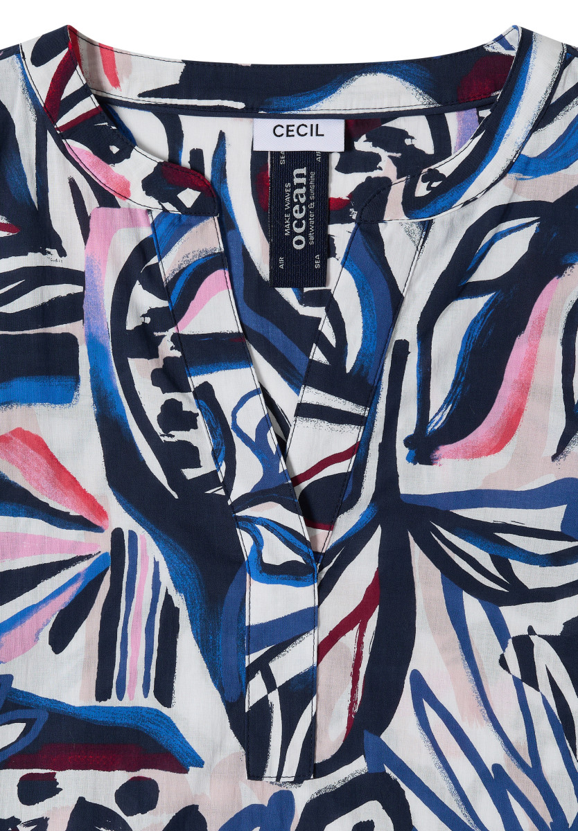 Diese Baumwolltunika von CECIL für Damen bringt mit ihrem maritimen Muster sommerliches Flair in dein Outfit. Der Split Neck und die 3/4-Ärmel unterstreichen den entspannten Stil, während die reine Baumwolle weich und luftig auf der Haut liegt. Der gerundete Saum sorgt für eine schmeichelnde Silhouette. Ideal für dich, wenn du eine leicht kombinierbare Bluse für warme Tage suchst.Lief.-Art-Nr: B346534