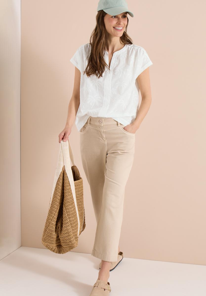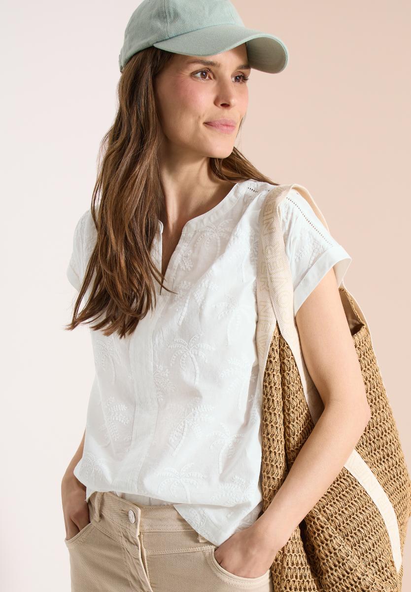 Bluse mit überschnittener Schulterpartie und dekorativer Stickerei, die dem Modell eine feminine Note verleiht. Der lässige Schnitt bietet angenehmen Tragekomfort und macht die Bluse vielseitig kombinierbar für Freizeit- und Business-Looks.