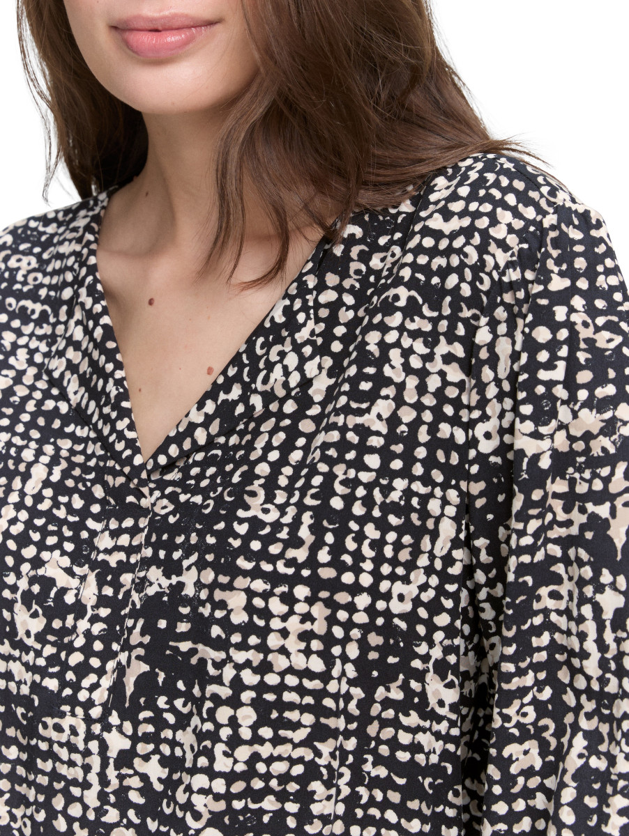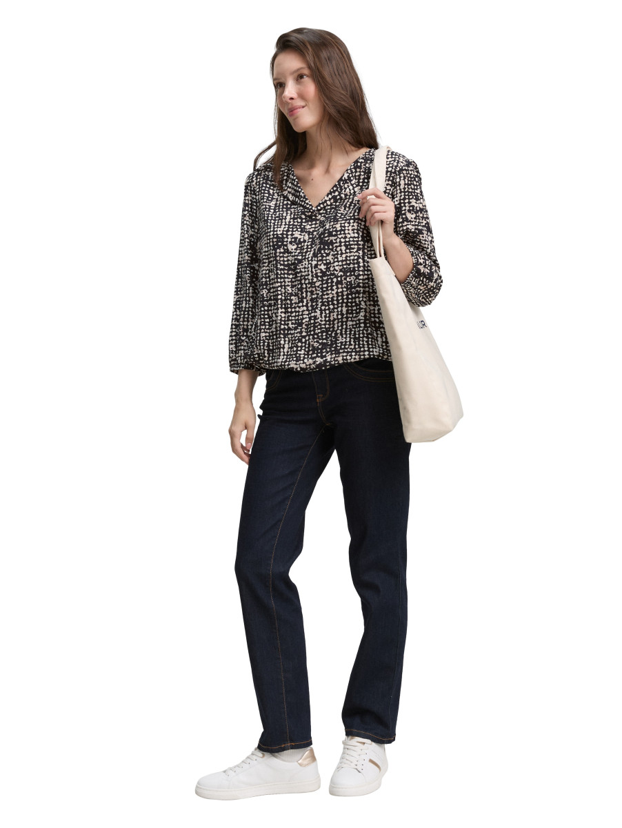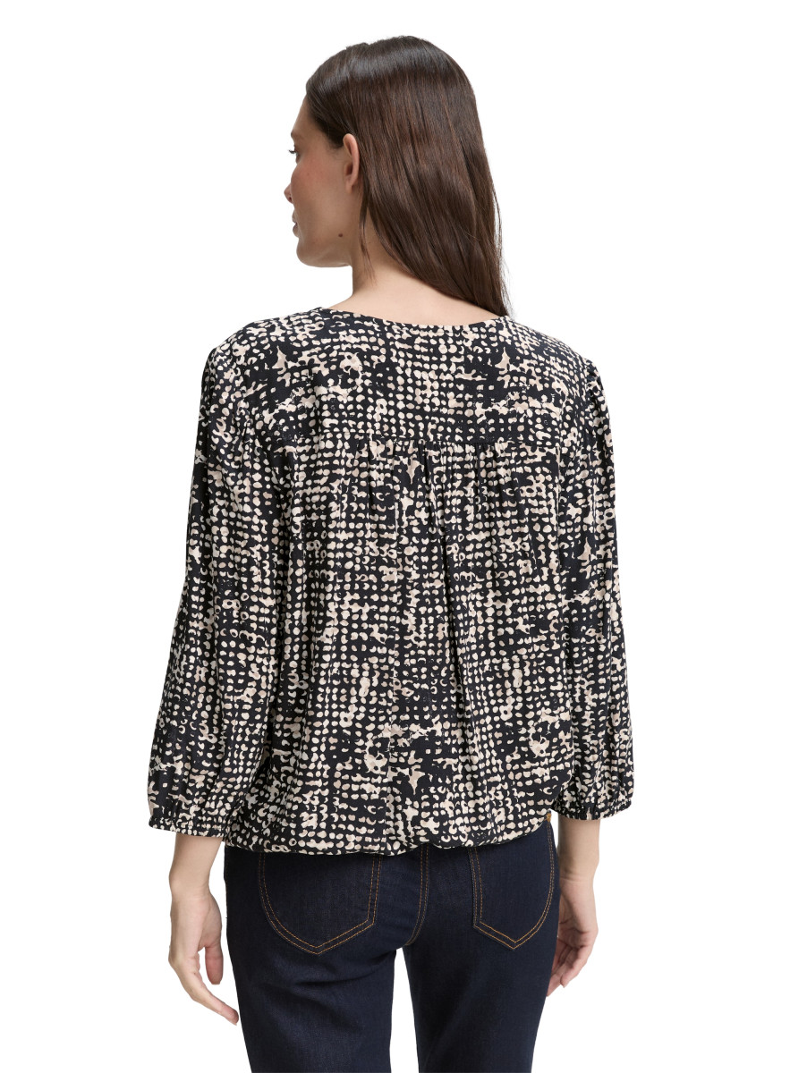 Bluse aus Viskose mit 3/4-Arm und V-Ausschnitt. Mit elastischem Gummibund am Saum und leichte Raffungen an den Schultern und auf der Rückseite.