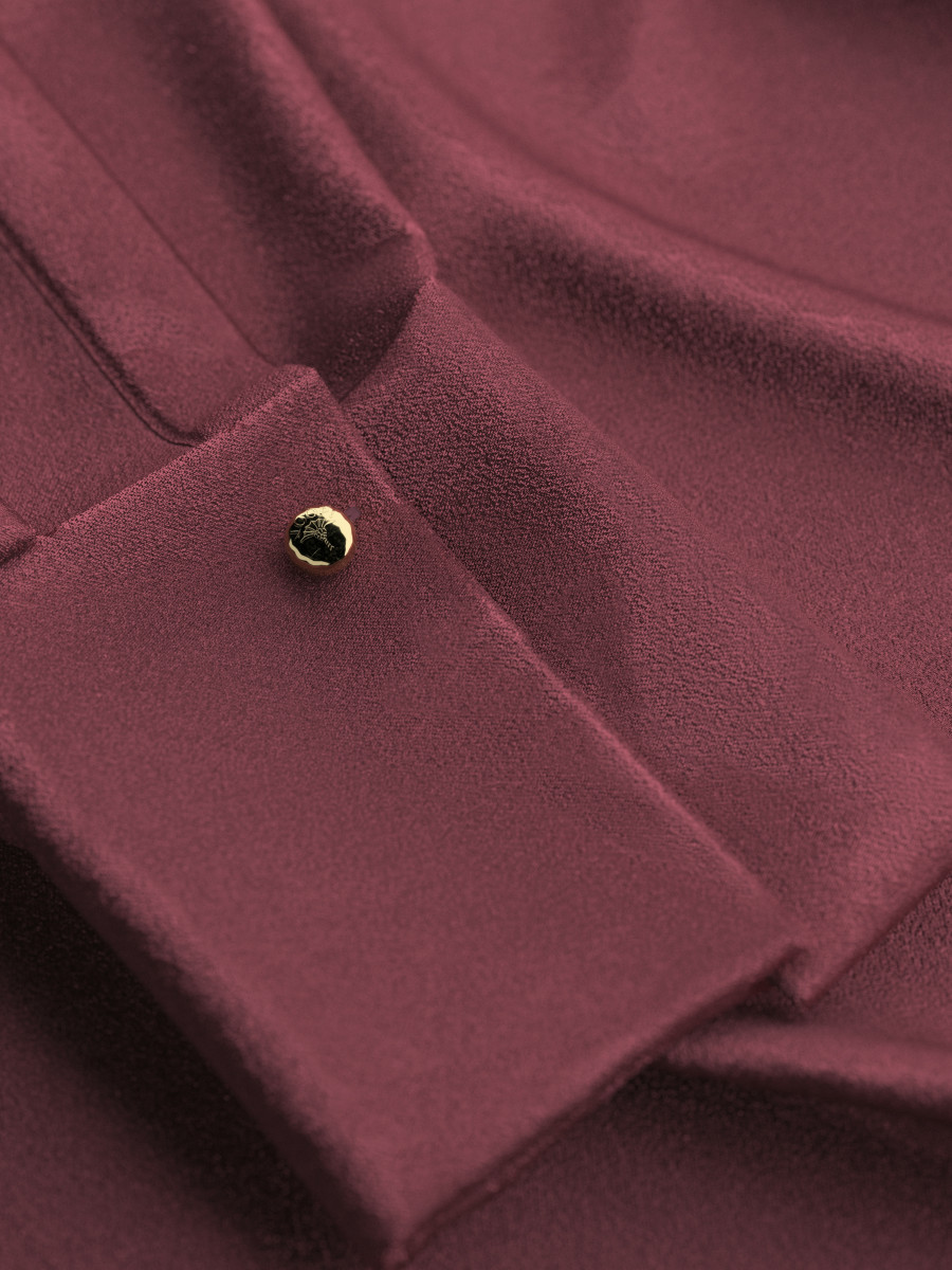 Die leicht glänzende Materialqualität sorgt für einen hochwertigen Look und ein angenehmes Tragegefühl. Die lange, fließende Silhouette mit überschnittenen Schultern und die breiten Manschetten unterstreichen den eleganten Charakter dieser Bluse – ideal für Büro, Event oder Dinner-Date.