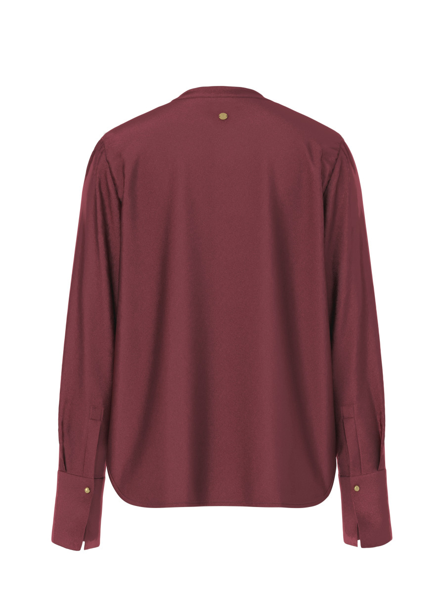 Eleganz trifft auf modernen Minimalismus – die JOOP! Damen Bluse in edlem Bordeaux ist ein stilvoller Klassiker für anspruchsvolle Looks. Mit ihrem schlichten Design, dem fließenden Stoff und dem feinen Stehkragen mit V-Ausschnitt verleiht diese Bluse jedem Outfit eine zeitlose Note.