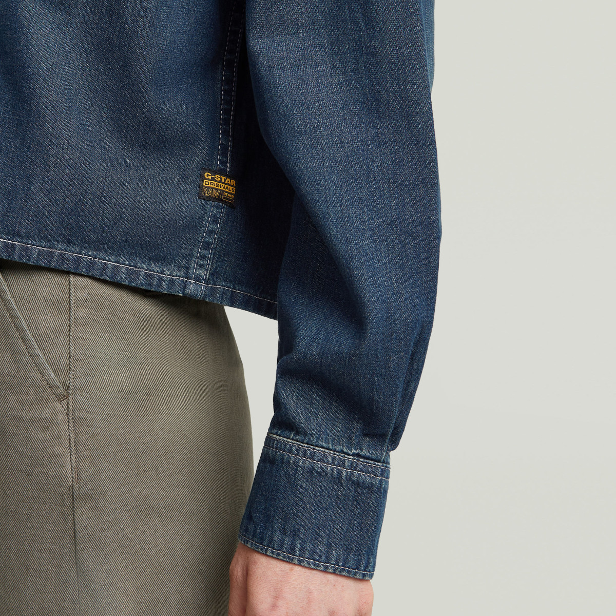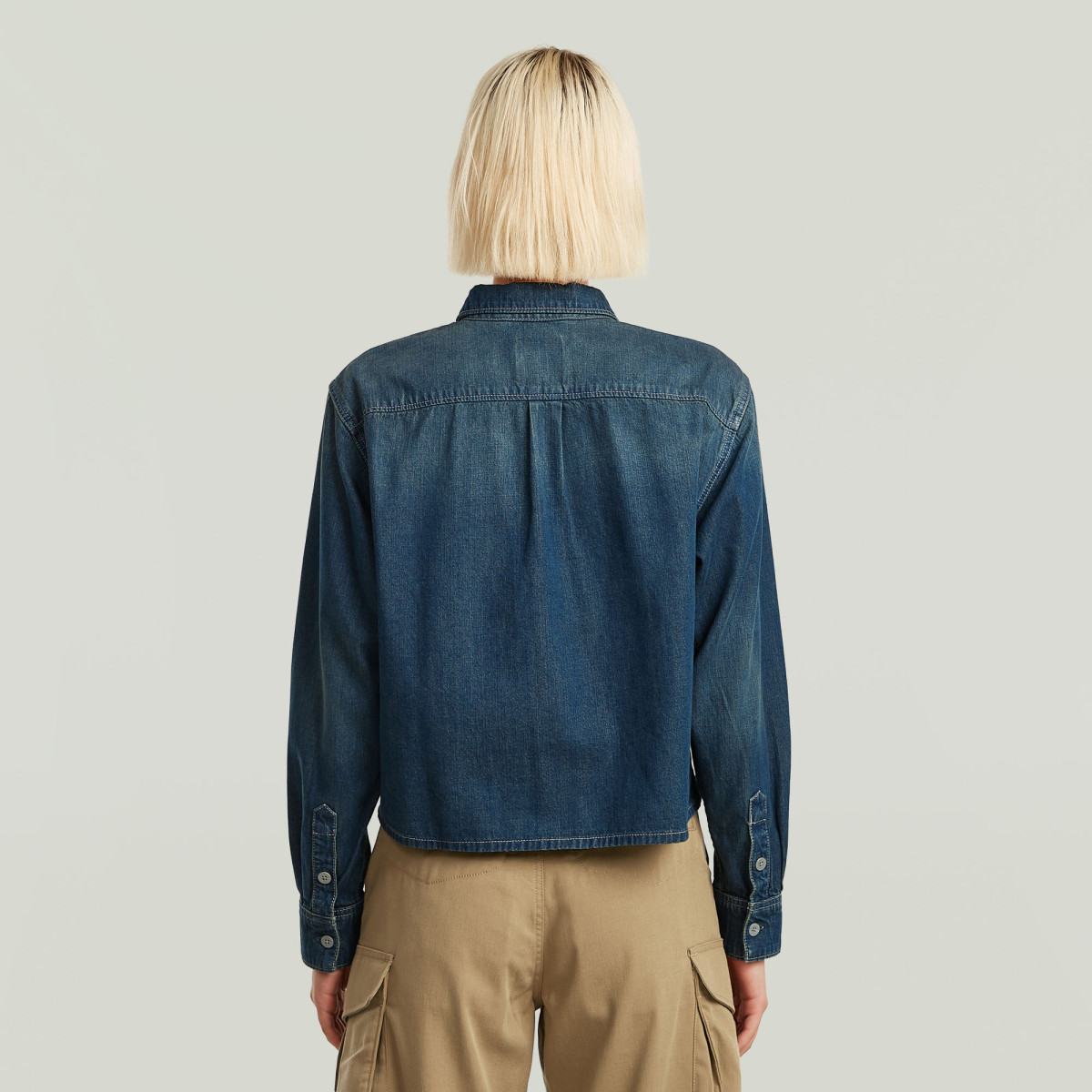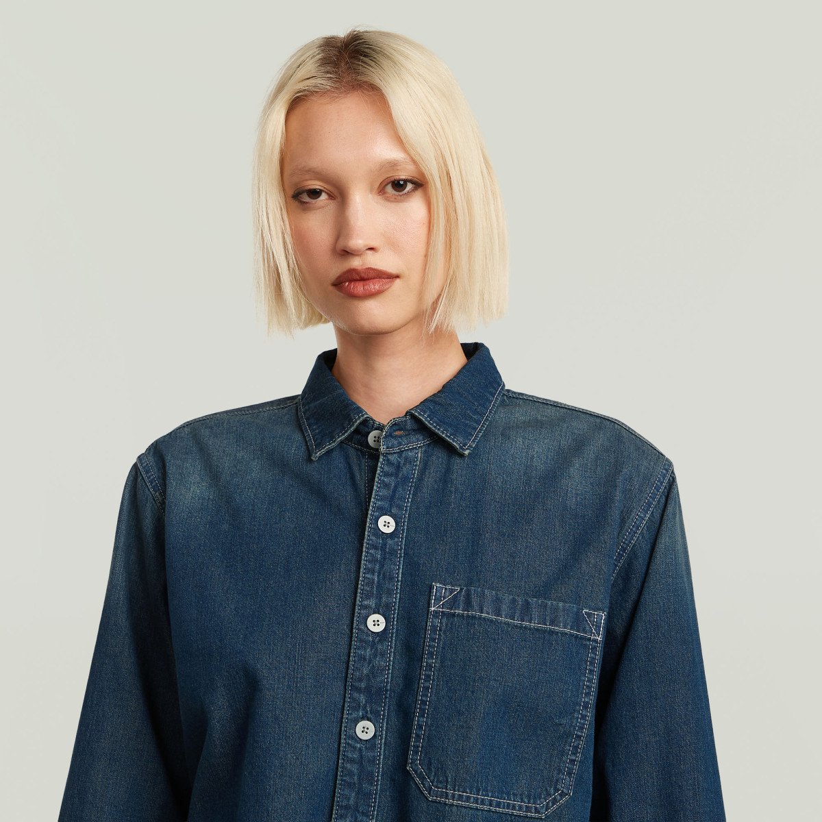 Mit durchgehender Knopfleiste, aufgesetzter Brusttasche und einem klassischen Umlegekragen lässt sich das Hemd vielseitig stylen – ob offen über einem Top oder geschlossen als Solo-Piece. Die dezente Waschung unterstreicht den cleanen, urbanen Charakter.