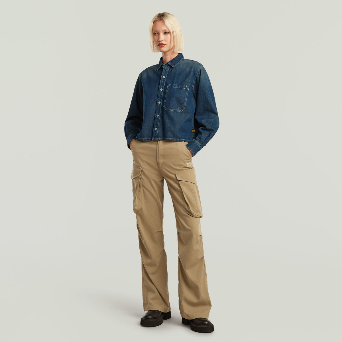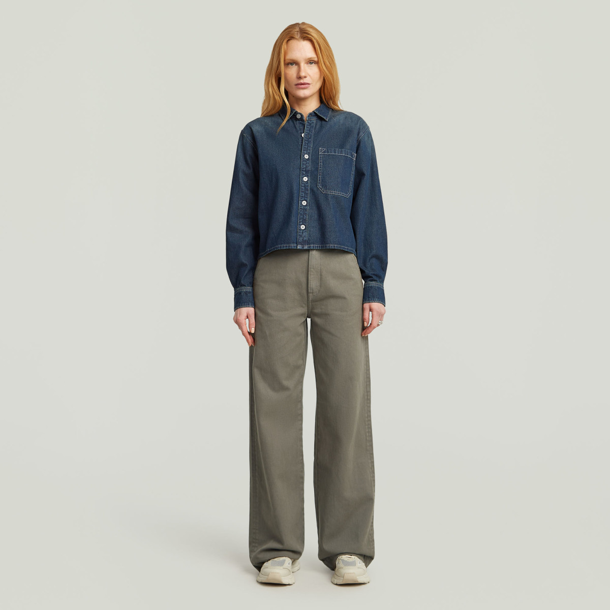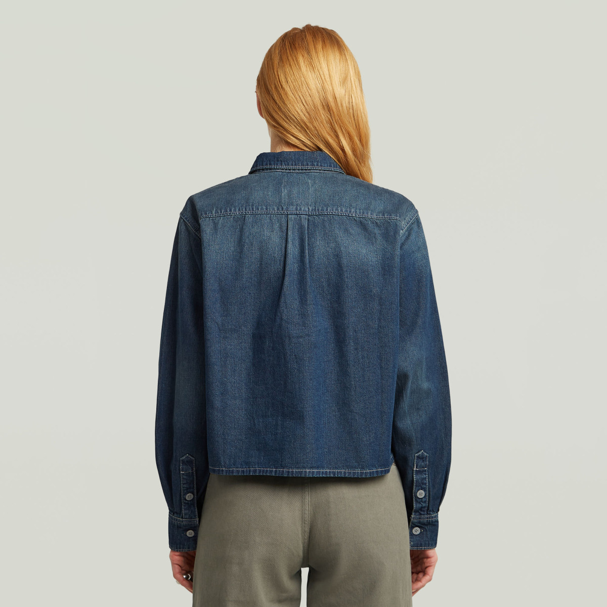 Mit durchgehender Knopfleiste, aufgesetzter Brusttasche und einem klassischen Umlegekragen lässt sich das Hemd vielseitig stylen – ob offen über einem Top oder geschlossen als Solo-Piece. Die dezente Waschung unterstreicht den cleanen, urbanen Charakter.