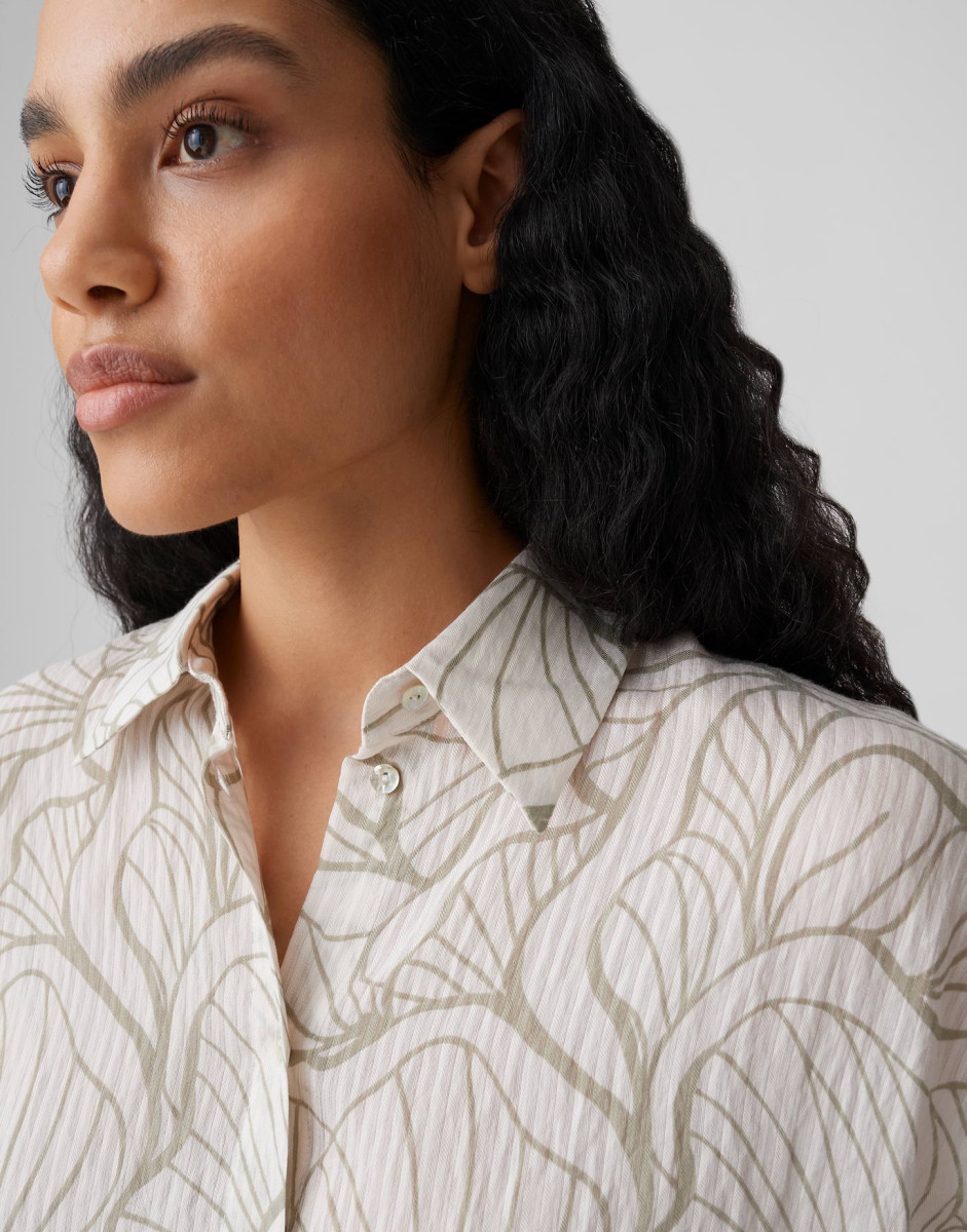 Die Bluse Fashell überzeugt mit einer weiten Passform und einem geraden Schnitt, die für ein entspanntes Tragegefühl sorgen. Überschnittene Schultern, 3/4-Ärmel und ein Hemdblusenkragen mit Knopfleiste verleihen der Bluse eine lässig-feminine Silhouette. Das leichte, fließende Gewebe mit Streifenstruktur und All-Over-Print hat einen weichen Griff und eine leichte Transparenz; die Rückenlänge beträgt ca. 60 cm.Lief.-Art-Nr: 10550314082423
