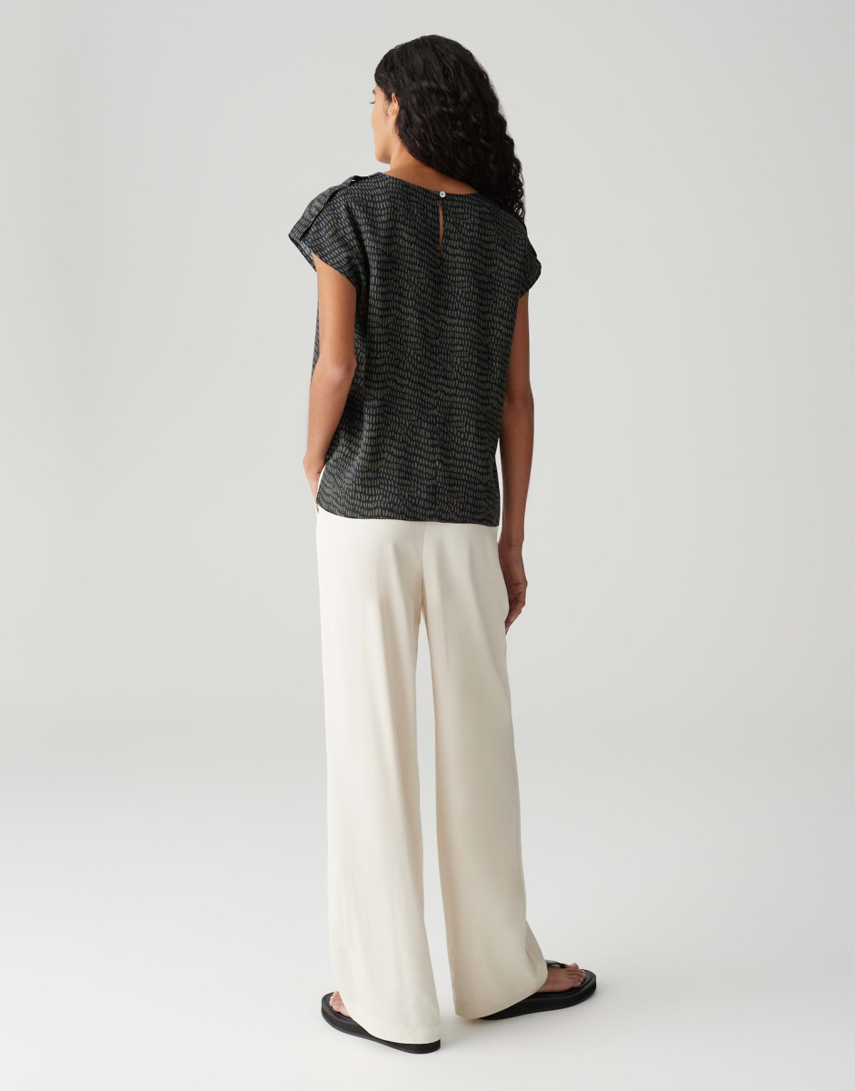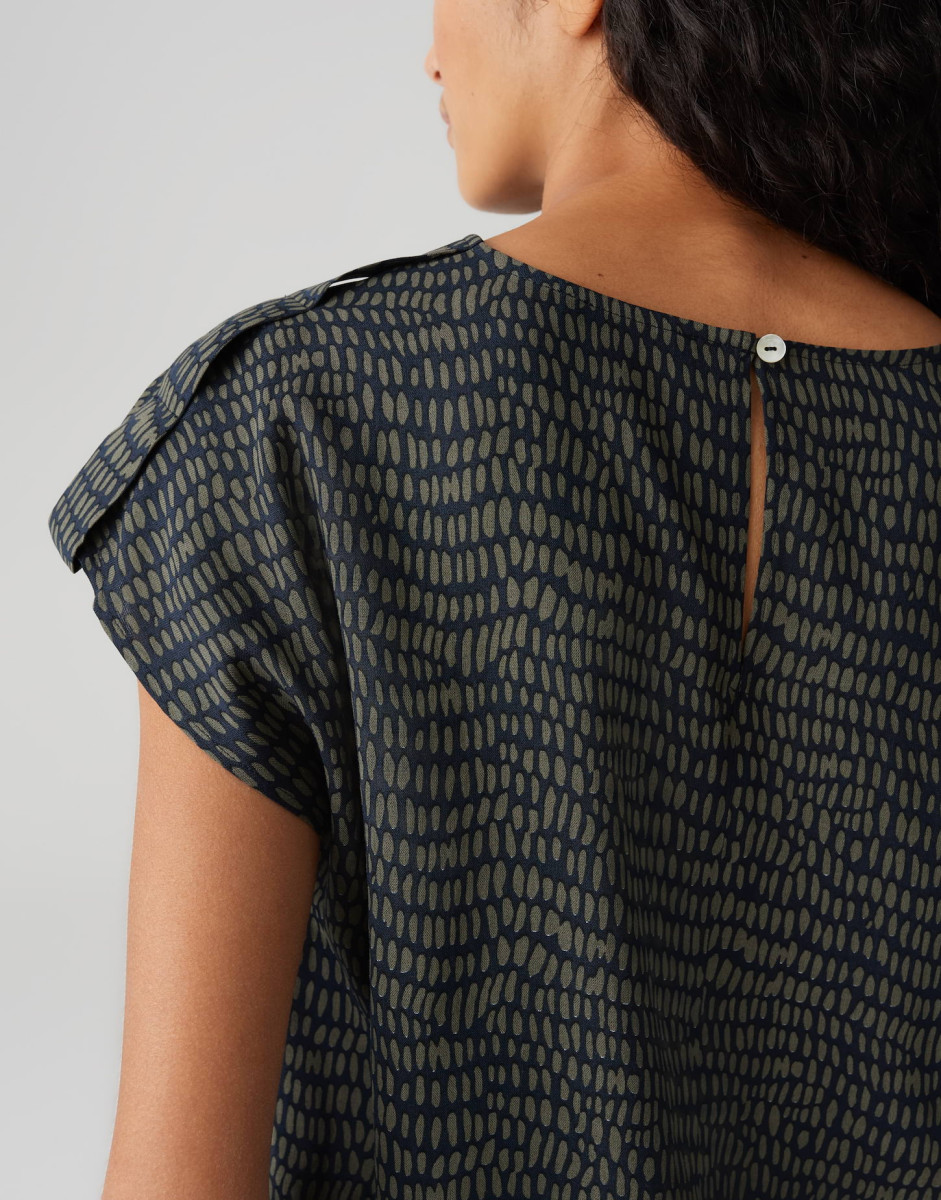 Lockere Passform | Gerader Schnitt | Normale Länge | Überschnittener Kurzarm | Rundhalsausschnitt | Rückenlänge Ca. 60 Cm Bei Größe 36 | Model Größe 174 Cm – Trägt Größe 36 | Webware | Enthält Nichttextile Teile Tierischen Ursprungs | Natürlicher Griff | Weich Fließender Fall | Knopf Mit Öse Im Rücken | Kleine Schlitze In Den Seiten | Perlmuttknöpfe | Schmale Schulterpatte