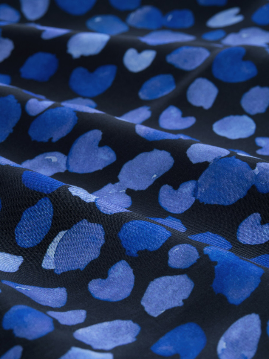 V-Ausschnitt | Fließende Viskose | Herz-Allover-Print | Langärmlig | Falten-Detail auf der Vorderseite