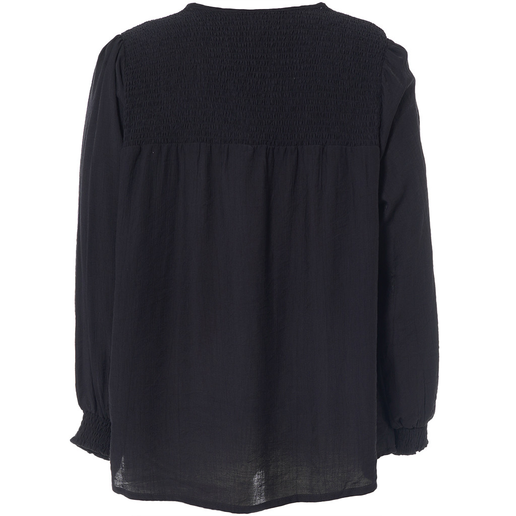V-Ausschnitt mit schlichter Kante | Lange Ärmel mit elastischen Manschetten | Lockerer Schnitt mit leichtem Fall | Das Material ist leicht und atmungsaktiv mit einer weichen Struktur, die natürlich fällt