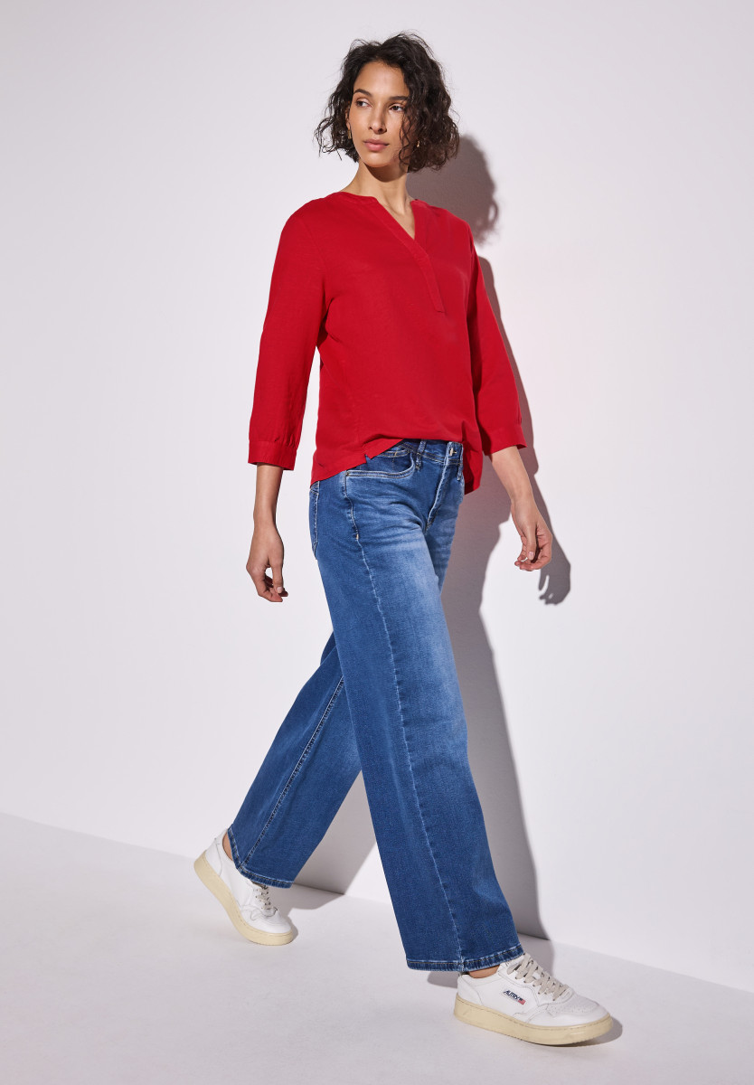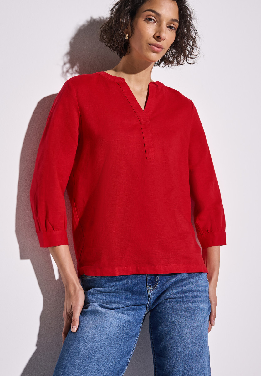 Diese Bluse von Street One für Damen überzeugt mit ihrem lässigen Design. Der geschlitzte Ausschnitt und die 3/4-Ärmel mit Bündchen verleihen ihr eine feminine Note. Der angenehme Leinen-Baumwollmix sorgt für ein luftiges Tragegefühl. Damenbluse Geschlitzter Ausschnitt 3/4-Arm mit Bündchen Angenehmer Leinen-Baumwollmix