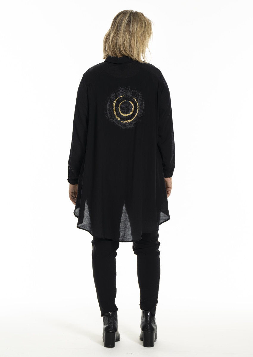 Das Modell hat einen klassischen Hemdkragen und eine durchgehende Knopfleiste. Die lockere Passform macht die Bluse bequem und vielseitig, sodass sie sowohl für die Arbeit als auch für entspannendere Anlässe gestylt werden kann.