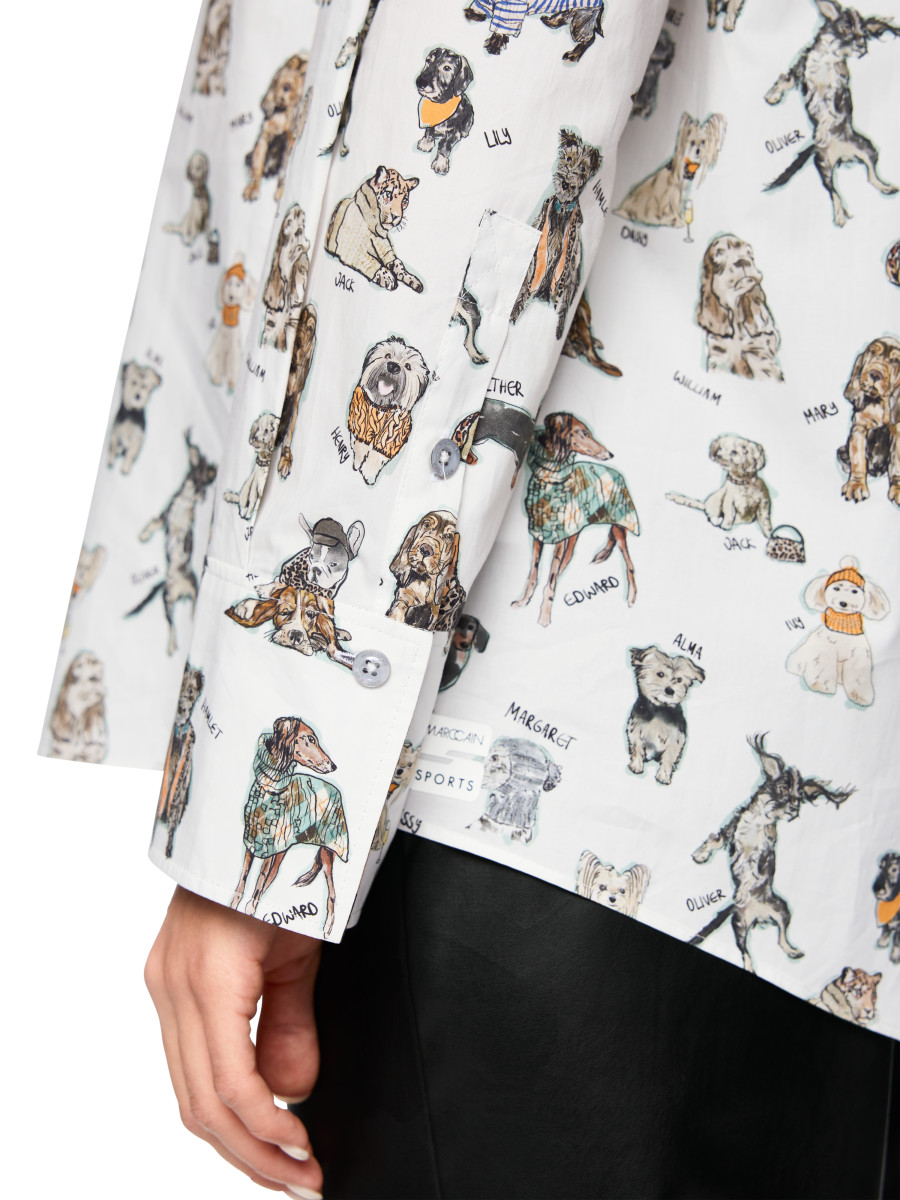 Klassisch geschnittene Bluse aus 100 % Bio-Baumwolle – Trägt das Nachhaltigkeitslabel „Rethink Together“. Mit Kragen, durchgehender Knopfleiste und Rückenfalte in leichter A-Linie. Der verspielte Hundeprint verleiht dem Modell eine besondere Note.