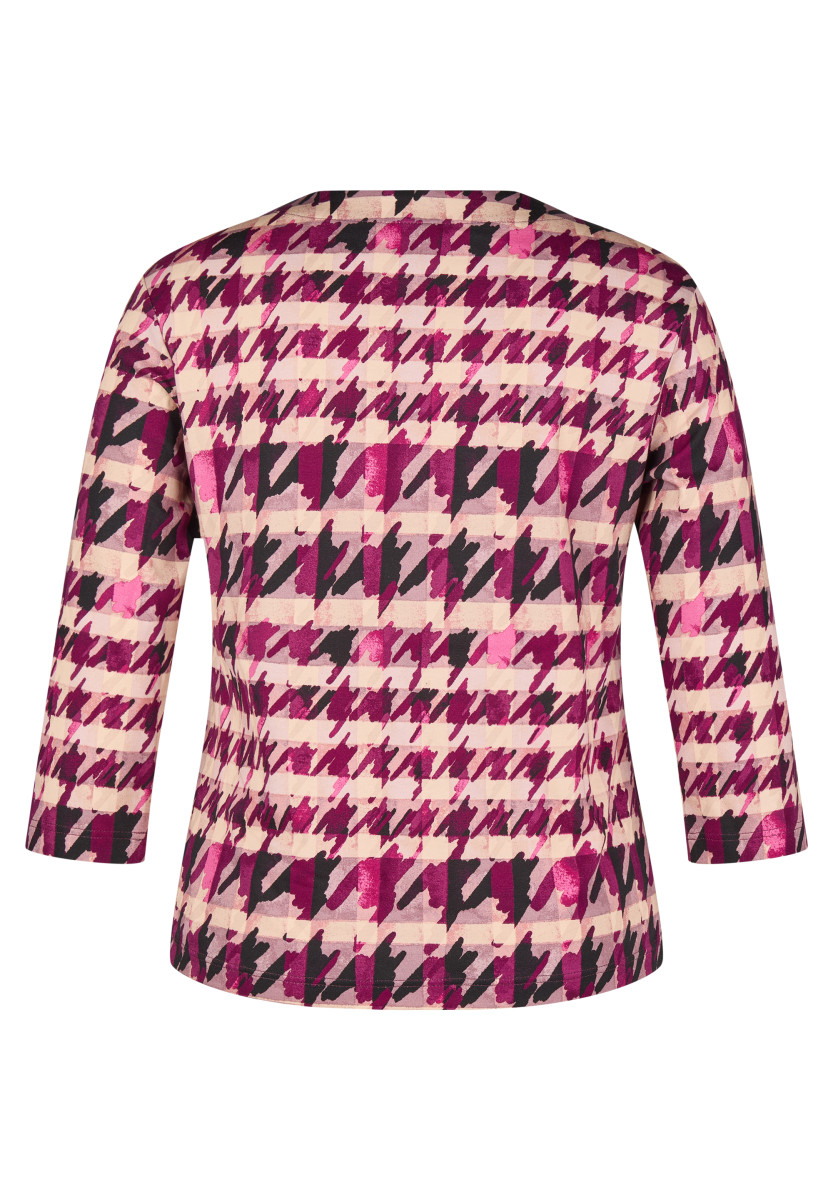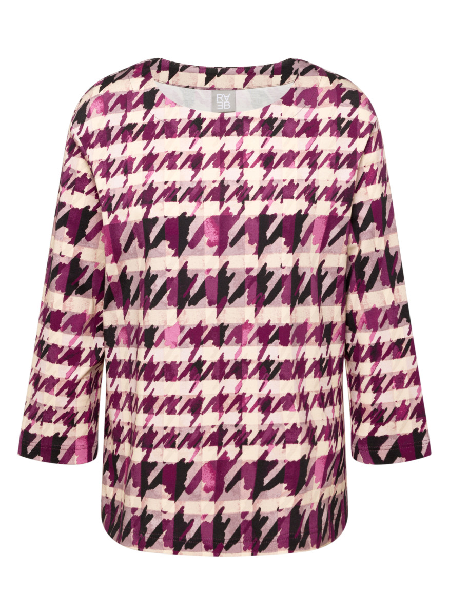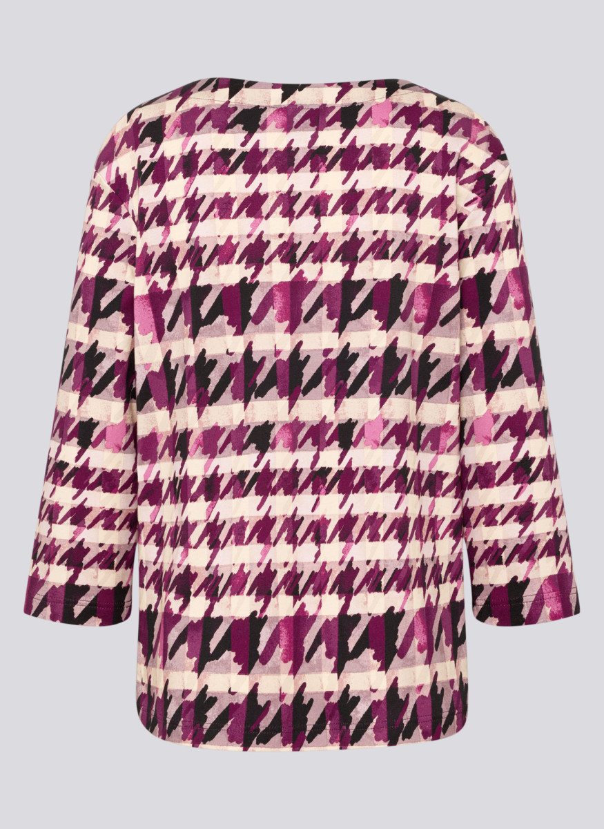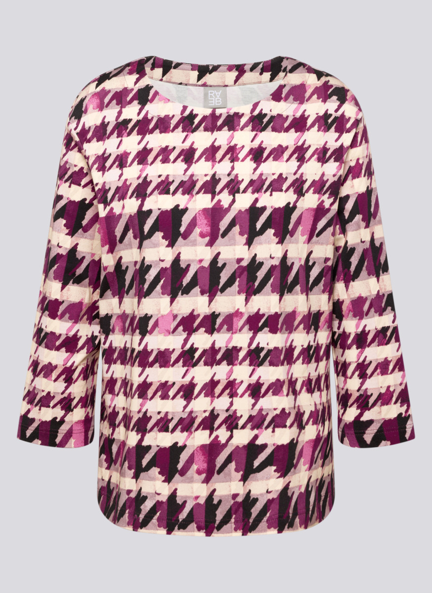 Weiter Rundhalsausschnitt | Reine Baumwollqualität | Abstraktes Hahnentritt-Dessin | 3/4-lange Ärmel | Trageangenehm und pflegeleicht