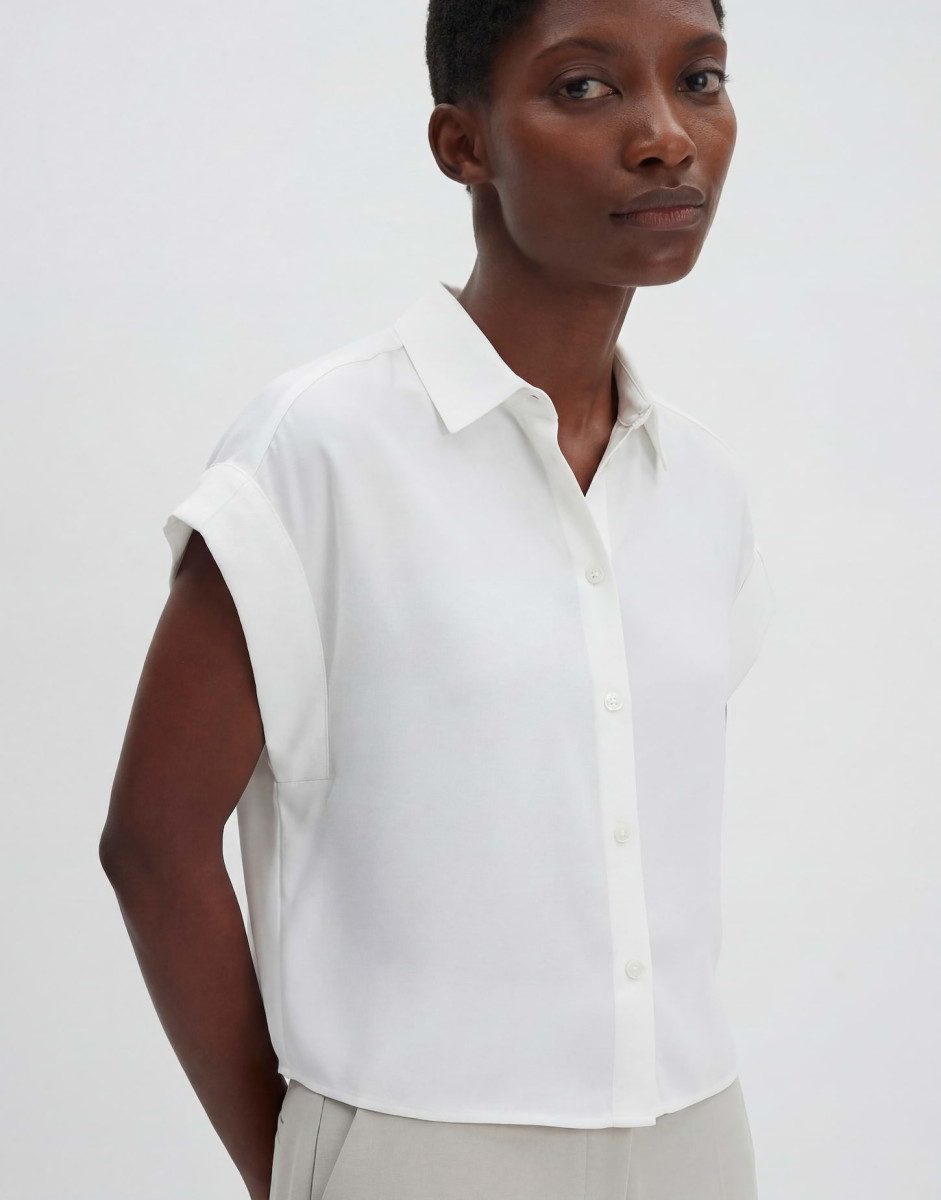 Die Bluse Zelya überzeugt mit einer lockeren Passform und geradem Schnitt sowie überschnittenen Kurzärmeln und einem klassischen Hemdblusenkragen. Die Webware zeigt eine dezente Twillstruktur und einen glatten Griff, wodurch die Bluse weich fällt; Knopfleiste und Ärmelaufschlag vervollständigen das stilsichere Design. In hellen Farbtönen ist das Modell leicht transparent und lässt sich vielseitig zu eleganten oder lässigen Outfits kombinieren.Lief.-Art-Nr: 10543913113421
