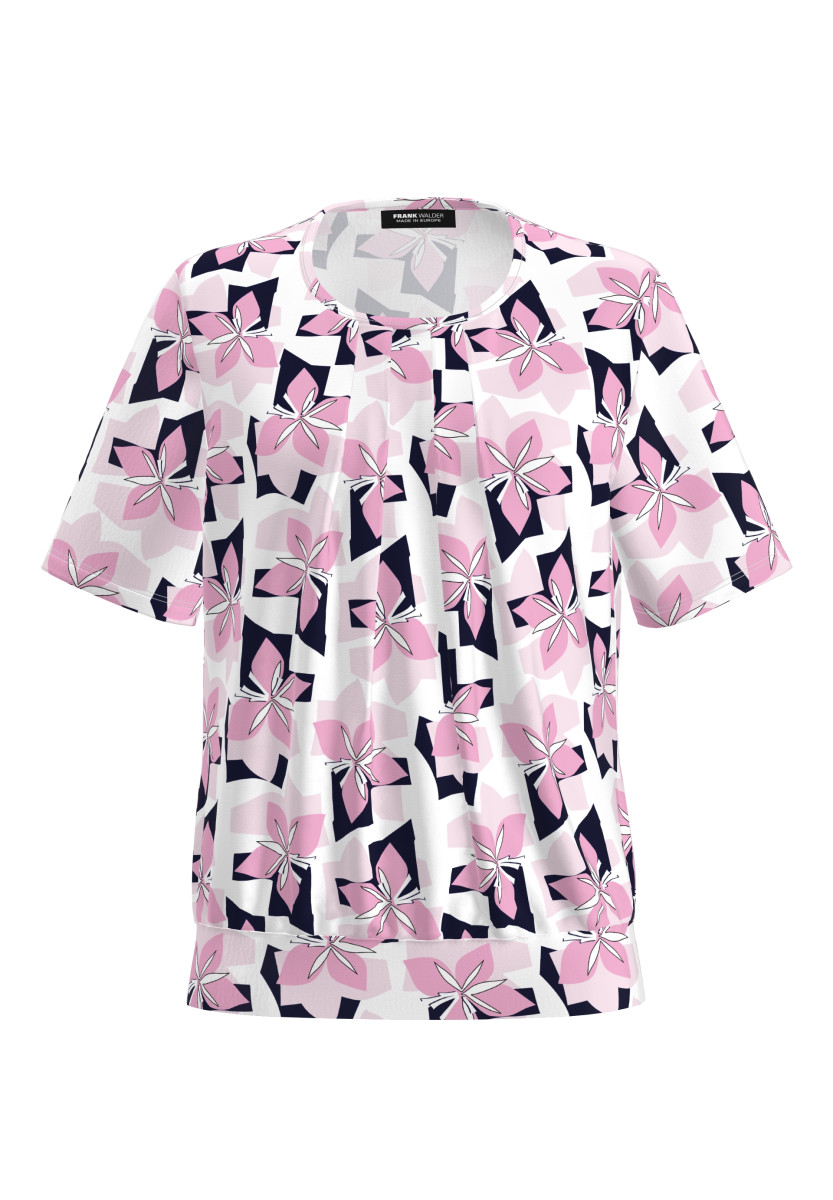 Modisches Blusenshirt mit stilvollem Muster und lockerer Passform. Der Rundhalsausschnitt mit gelegten Falten sorgt für einen femininen Look. Der elastische Bundabschluss bietet optimalen Tragekomfort. Perfekt für elegante und legere Outfits