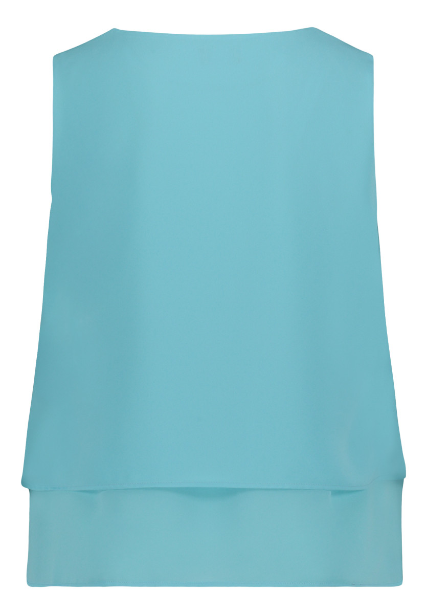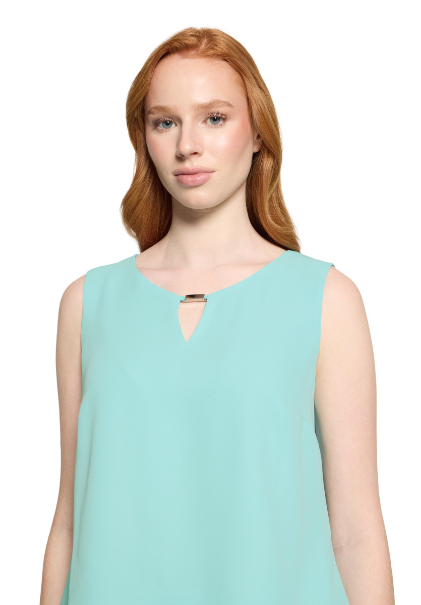 Das Blusentop präsentiert sich in Loose Fit und sorgt für einen lässig-leichten Look. Mit einer Gesamtlänge von 64 cm und einem ab Taille gemessenen Fall von 22 cm bietet es eine schmeichelhafte Passform. Der runde Ausschnitt mit dekorativem Dekoteil, die ärmellose Schnittführung und das feine Chiffon-Material verleihen dem Oberteil eine feminine, elegante Note.Lief.-Art-Nr: 40034011