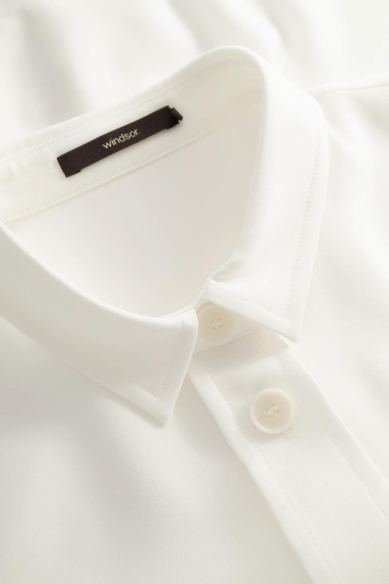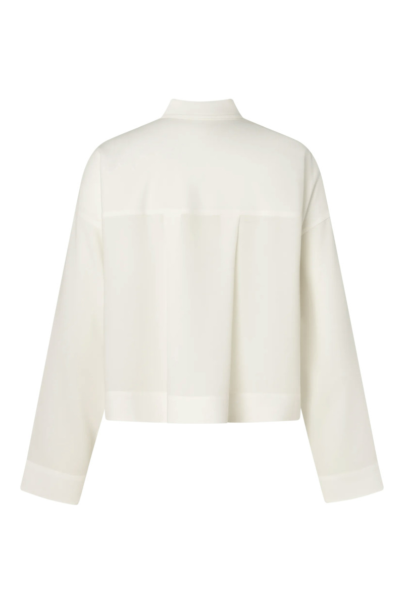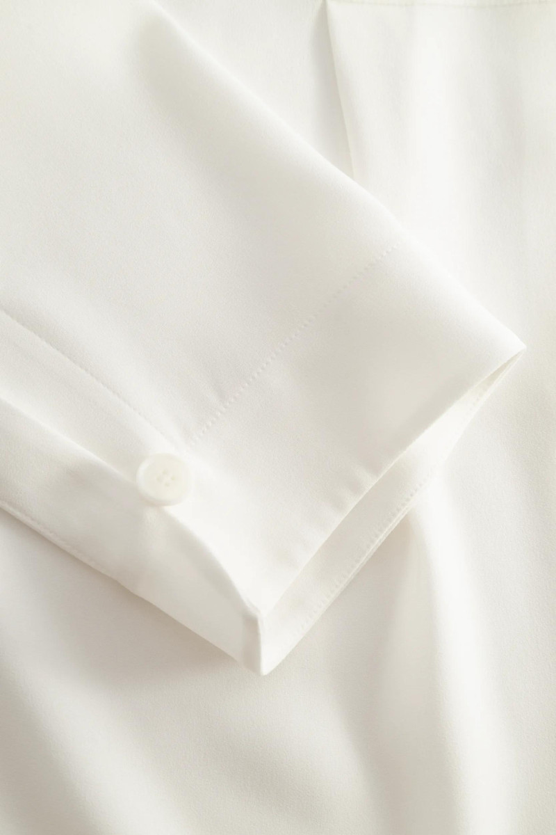 LOOSE FIT | Hemdbluse aus Crêpe | Hemdblusenkragen | Durchgängige Knopfleiste | Überschnittene Schultern | Lange Ärmel mit knöpfbaren Abschlüssen | Rückseite mit Schulterpasse und Kellerfalte | Feiner Saumabschluss