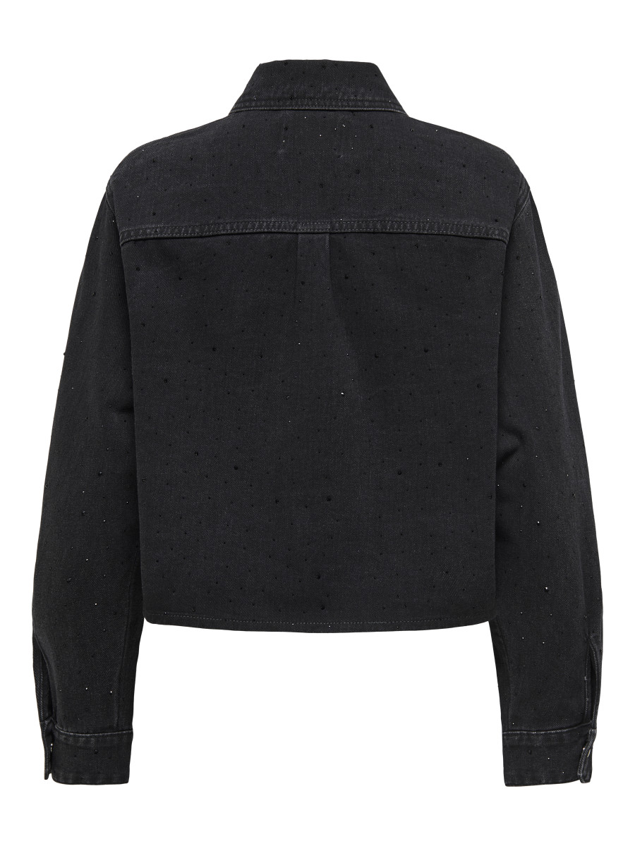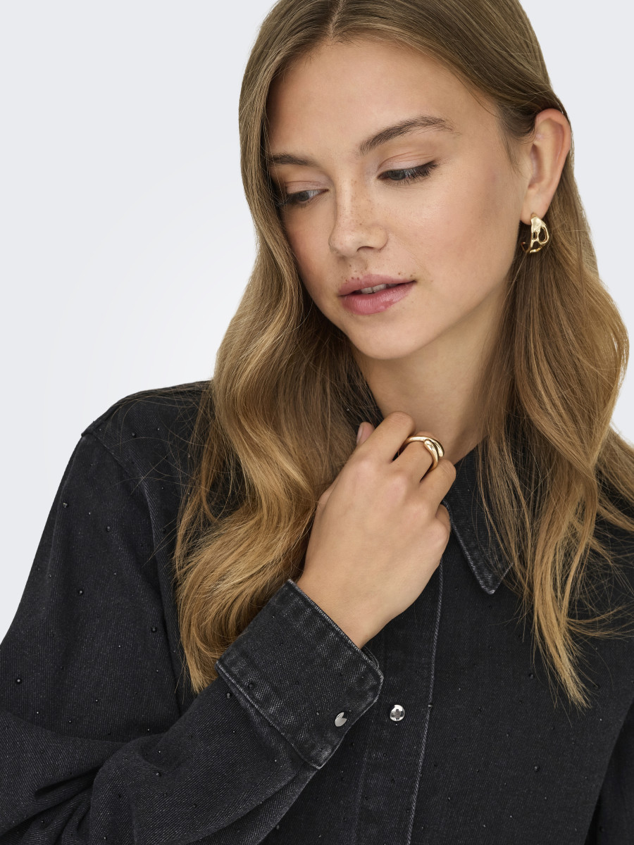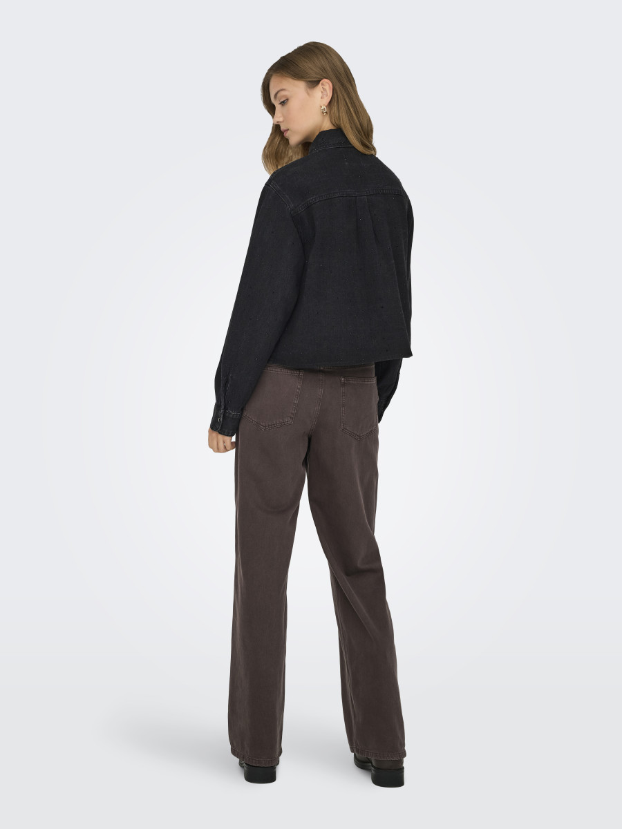 Hemdkragen | Langarm | Knopfleiste | Verkürzt | Ärmelbündchen mit Knopf | Viskose-Mix | Strasssteine