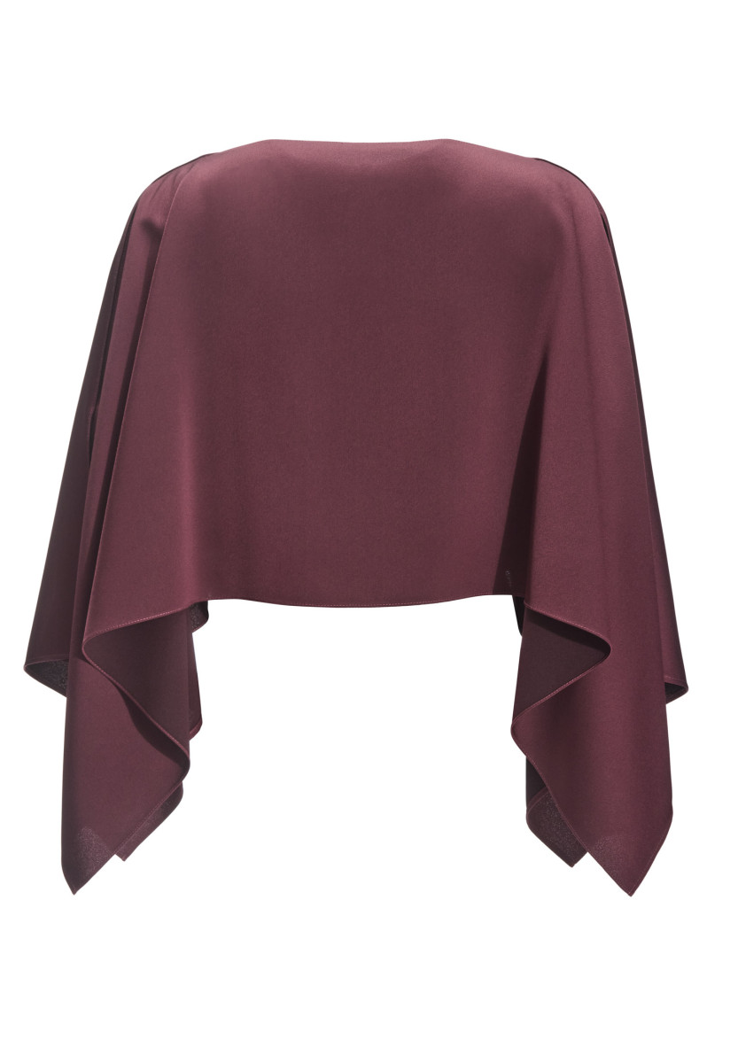 Dieses dramatische Oberteil besticht durch seine skulpturale Silhouette und das luxuriöse Material. Gefertigt aus einem glänzenden Satin-Stoff, fällt es fließend und erzeugt bei Bewegung einen edlen Schimmer. Der Schnitt ist besonders extravagant, da er die Form eines Ponchos oder Capes annimmt, das locker und weit über die Schultern fällt. Die verkürzte Länge und der weite, kastenartige Fall enden in spitzen oder asymmetrischen Saumkanten, die dem Design eine moderne Note verleihen. Es verfügt über einen schlichten, weiten Rundhalsausschnitt, der einen eleganten Kontrast zur Volumenfülle des restlichen Oberteils bildet. Dieses Statement-Piece ist ideal für festliche Abendveranstaltungen und lässt sich am besten mit schmal geschnittenen Unterteilen wie Bleistiftröcken oder Skinny Hosen kombinieren, um die Proportionen auszugleichen.