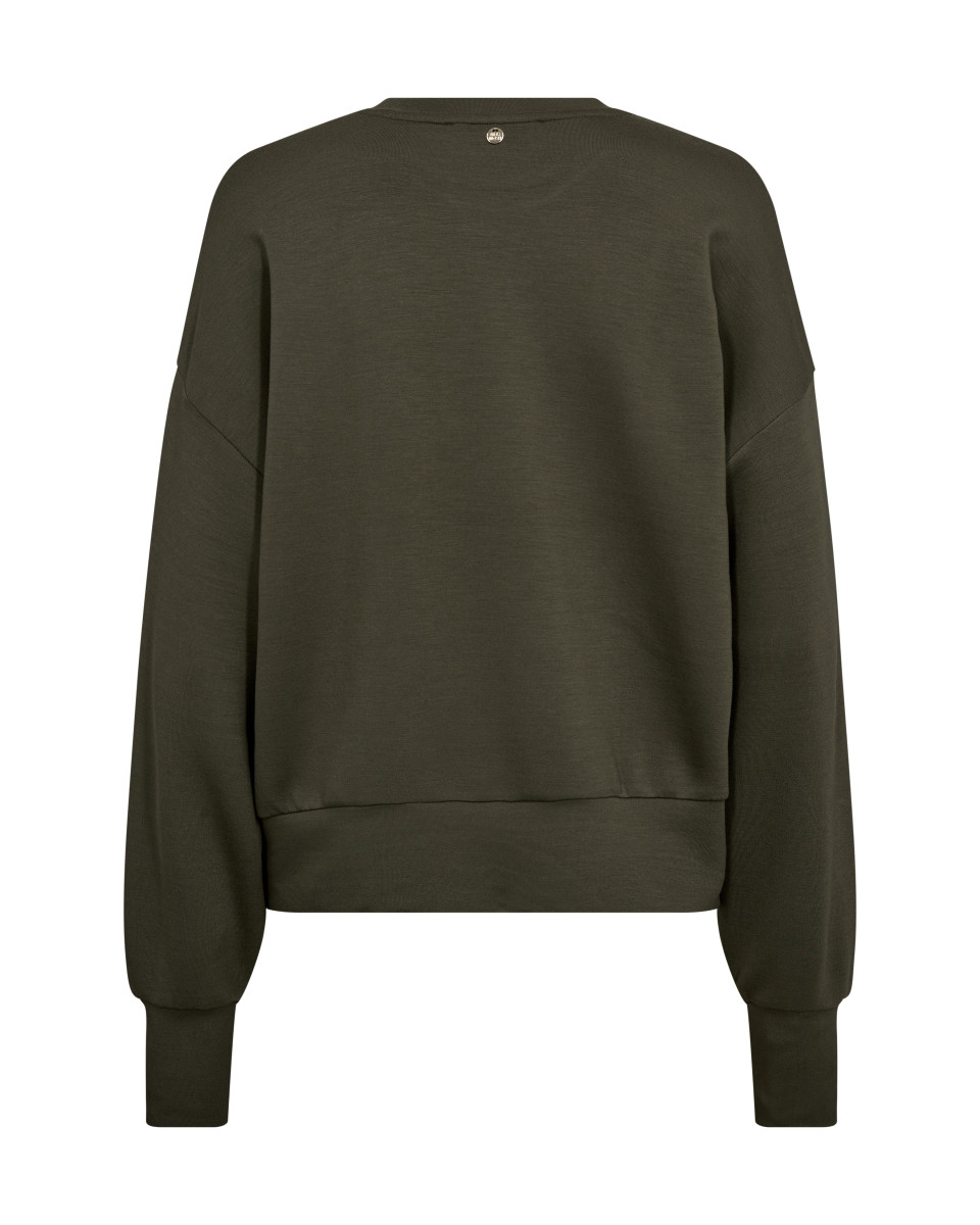 Das zentrale Designelement ist der große, weiße Print des Wortes "CREATE" in einer klassischen, geschwungenen Universitäts-Schrift, ergänzt durch die Jahreszahl "MM 2010", welche die Gründung des Labels andeuten könnte. Diese Applikation verleiht dem Sweatshirt einen auffälligen und zugleich lässigen Charakter. Der Schnitt ist locker und komfortabel gehalten, mit überschnittenen Schultern (Dropped Shoulders), was eine entspannte Silhouette kreiert. Die breiten Rippbündchen an Ärmeln und Saum sowie der dezente V-Einsatz am Rundhalsausschnitt (V-Stitch) unterstreichen den sportiven Retro-Look. Gefertigt aus einem weichen, hautfreundlichen Sweatstoff, bietet dieses Shirt ein angenehmes Tragegefühl und ist der perfekte Begleiter für die Freizeit oder als lässiger Akzent zu eleganten Hosen oder Röcken.