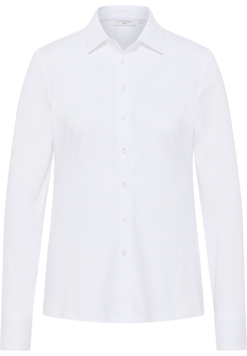 In unserem geschmeidigen JERSEY SHIRT fühlen Sie sich garantiert wohl, denn es handelt sich um ein elastisches Shirt, das weich und angenehm zu tragen ist und maximale Bewegungsfreiheit bietet. Die FITTED Passform ist besonders figurbetont, ihr taillierter Schnitt bringt eine schmale Silhouette perfekt zur Geltung. Dieses Modell ist leicht tailliert durch eine Seitennaht und zeichnet die Silhouette dezent nach. Die Rückenlänge beträgt 66 cm. Unser Jersey-Stoff liegt weich und geschmeidig auf der Haut und ist von ausgezeichneter Qualität aus 100% Baumwolle. Er ist dehnbar, saugfähig und atmungsaktiv dank einer feinen Maschenstruktur. Heute noch dieses Shirt, dass perfekte Balance von körpernaher Passform und Komfort bietet, online bestellen. In der Farbe Dunkelblau handelt es sich um ein Masterpiece, das jede stilvolle Frau in Ihrem Kleiderschrank haben sollte.