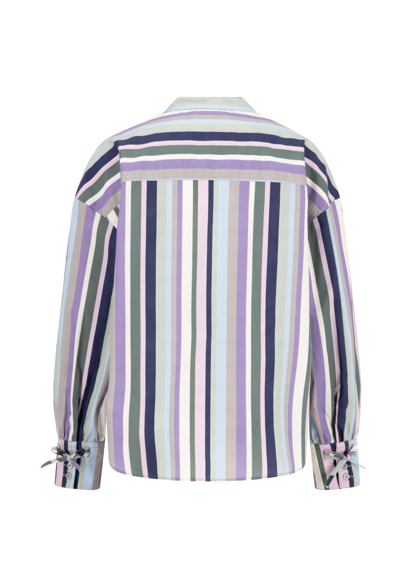Mehrfarbig gestreifte Bluse mit modernem, zeitlosem Design, ideal für vielseitige Outfits. Das Modell lässt sich einfach zu Jeans, Röcken oder eleganteren Kombinationen kombinieren. Die Bluse richtet sich an Damen und eignet sich sowohl für den Alltag als auch für besondere Anlässe.