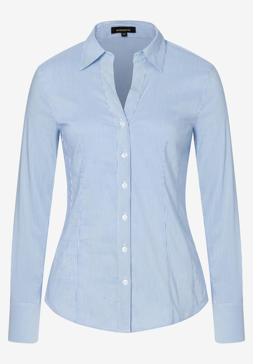 Die gestreifte Hemdbluse von MORE & MORE in angenehm-softer Baumwoll-Mischung ist die perfekte Ergänzung zum klassischen Businessanzug. Sie kann aber genauso gut zur lässigen Jeans oder sportiven Chino gestylt werden.