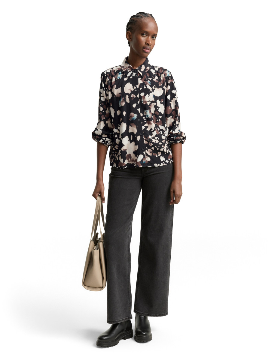 Gemusterte Hemdbluse aus Viskose mit elastischem Gummibund am Ärmelsaum | Regular Fit - gerader Schnitt