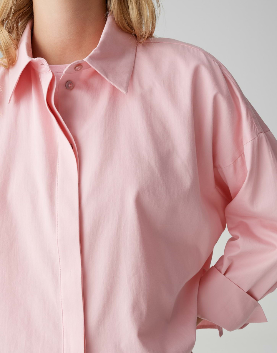 Weite Passform | Gerader Schnitt | Verkürzte Länge | Langarm | Hemdblusenkragen | Reine Baumwolle | verdeckte Knopfleiste | Lange Schlitze in den Seiten | Klassische Manschetten
