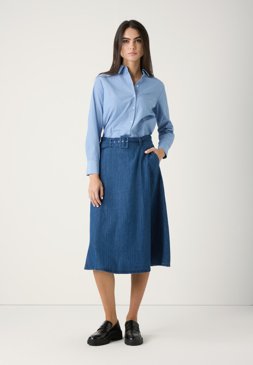 Gerade Form | Durchgehende Knopfleiste | Hemdblusenkragen | Lange Ärmel mit geknöpften Manschetten | Gestreift