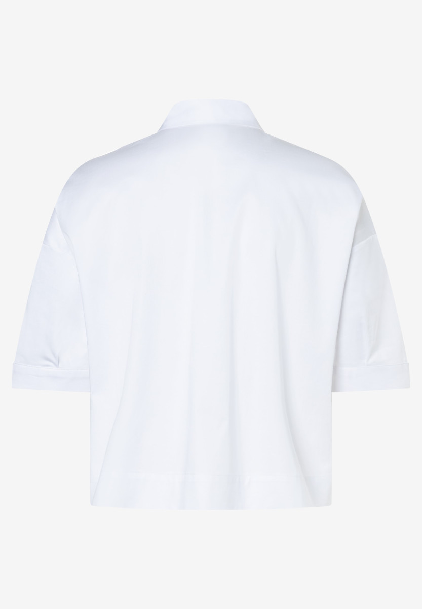 Die verkürzte, hochgeschlossene Hemdbluse von MORE & MORE in angesagtem Boxy Shape verkörpert den perfekten Mix aus klassisch und trendy. Der weite, kastige Schnitt bietet einen angenehmen Tragekomfort und verleiht der Bluse zugleich einen coolen, lässigen Touch - perfekt für alle, die einen cleanen, modernen Look lieben.Lief.-Art-Nr: 61822491