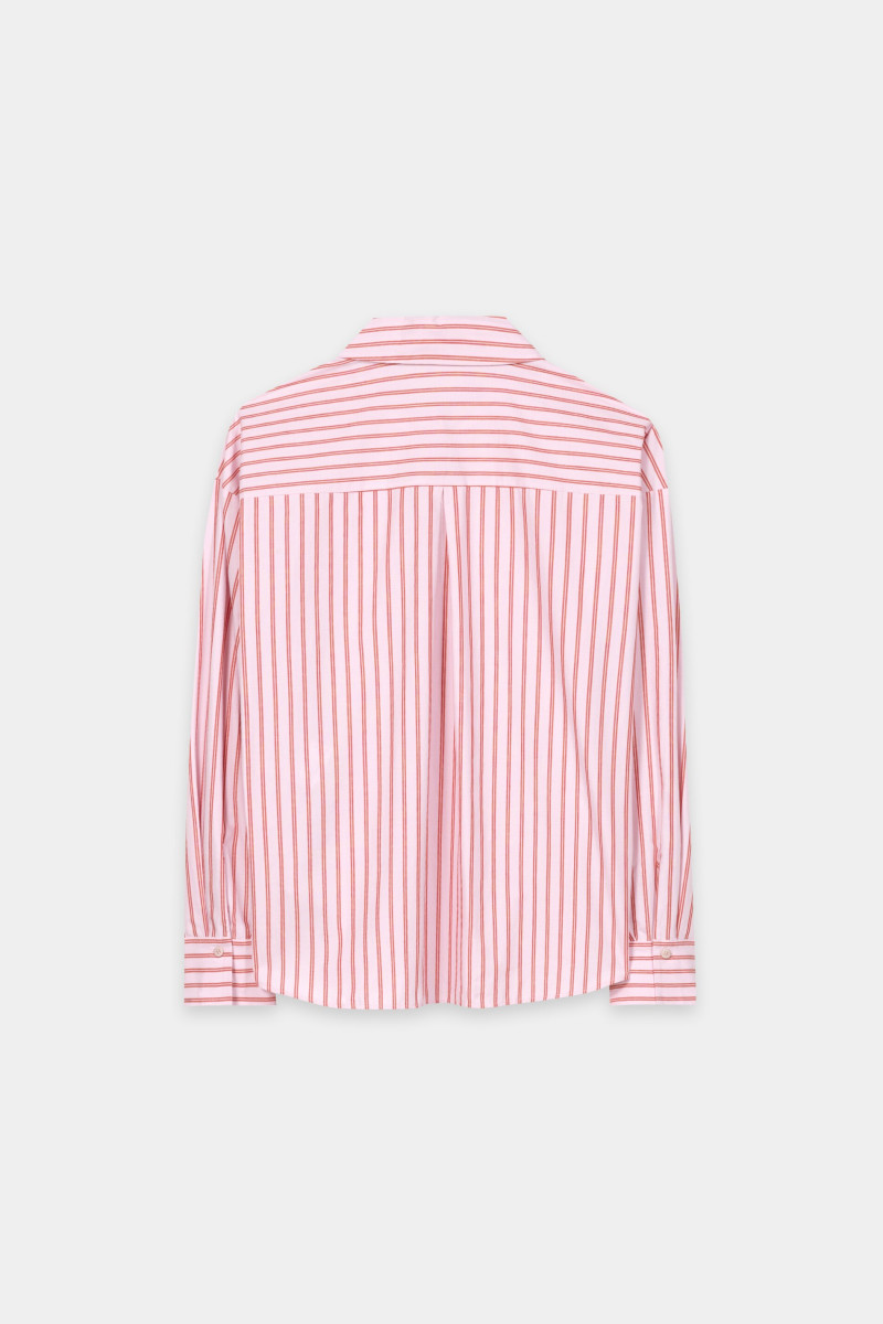 Hemdbluse aus reiner Baumwolle mit sommerlichem Streifenprint. Aufwendige Plastron-Details an der Knopfleiste in Kombination mit dem Hemdkragen und der länger geschnittenen Silhouette vollenden das klassisch-moderne Design.