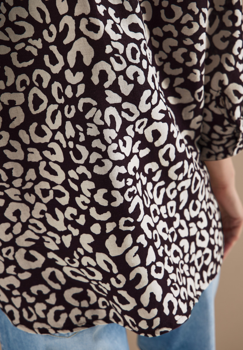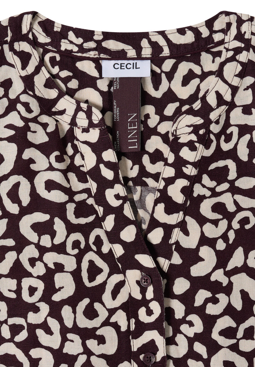 Die Tunika von CECIL setzt mit einem trendigen Leo-Muster modische Akzente. Der lässige Split Neck, die 3/4-Ärmel und die durchgehende Knopfleiste verleihen der Bluse einen entspannten Casual-Stil und sorgen für ein angenehmes Tragegefühl. Die Zusammensetzung aus 55% Leinen und 45% Viskose unterstreicht den leichten, natürlichen Charakter des Modells.Lief.-Art-Nr: B346252
