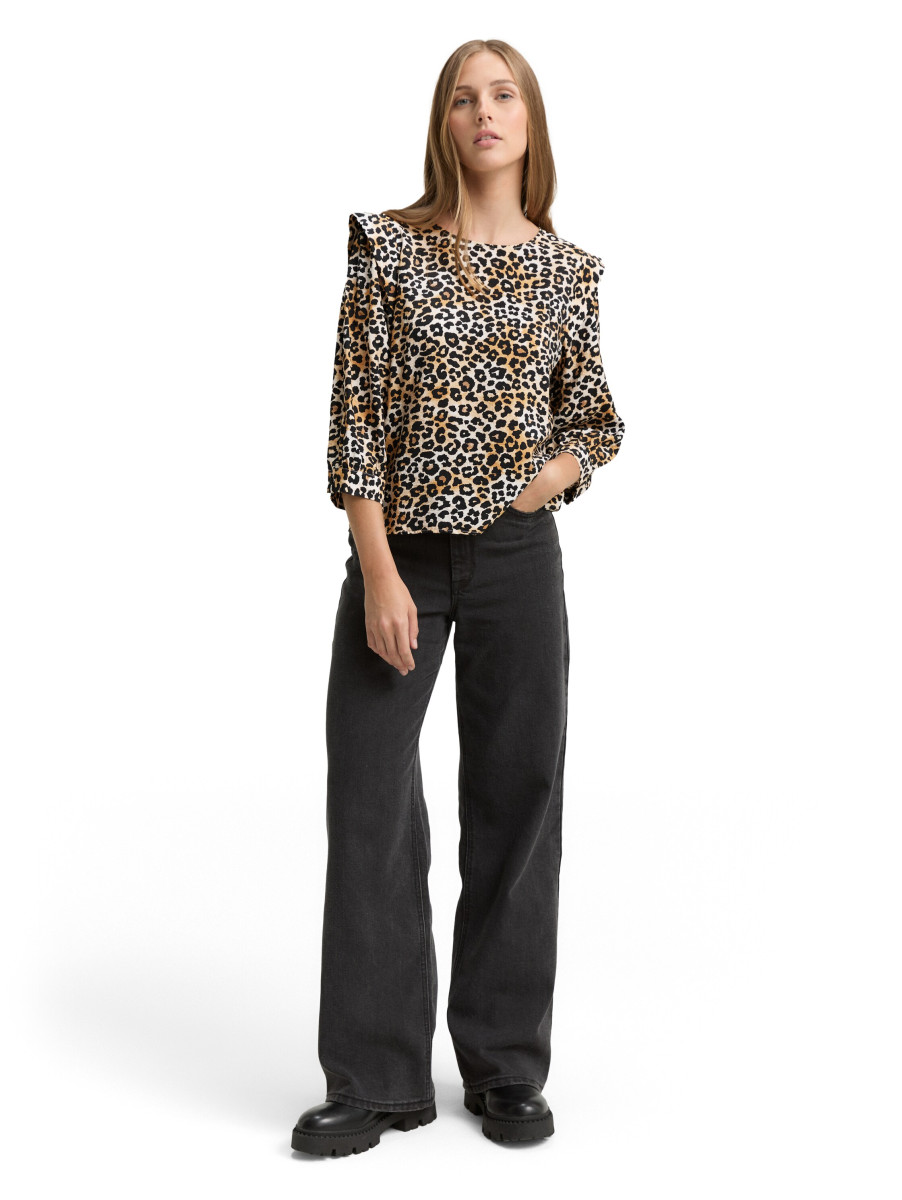 Locker geschnitten | Schulter-Detail, leichte Raffungen am Ärmel | Knopfverschluss auf der Rückseite | Loose Fit - lockerer Schnitt | Rundhals | Leo-Muster | 3/4 Arm | Viskose-Mix