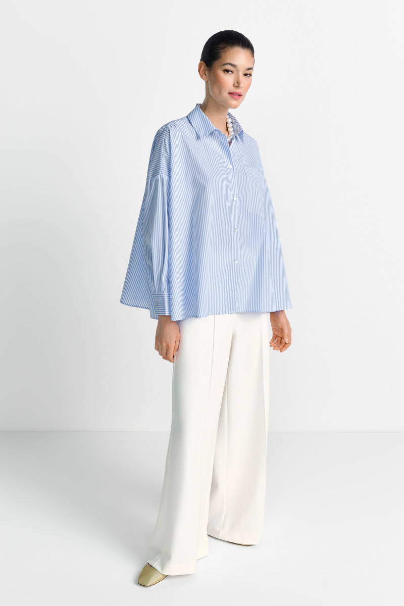 Oversize-Bluse mit Streifenmuster für einen modernen, lässigen Look. Sie überzeugt durch ihr angenehmes Tragegefühl und lässt sich vielseitig zu Jeans oder eleganteren Hosen kombinieren. Ein zeitloses Kleidungsstück für Damen, das sich im Alltag und für entspannte Anlässe eignet.Lief.-Art-Nr: NOS SC OS Str B
