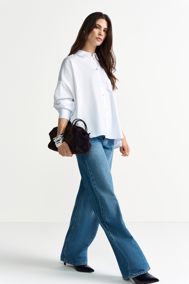 Hemdkragen | Langarm | Knopfleiste | Locker geschnitten | Oversized | Brusttasche | Reine Baumwolle