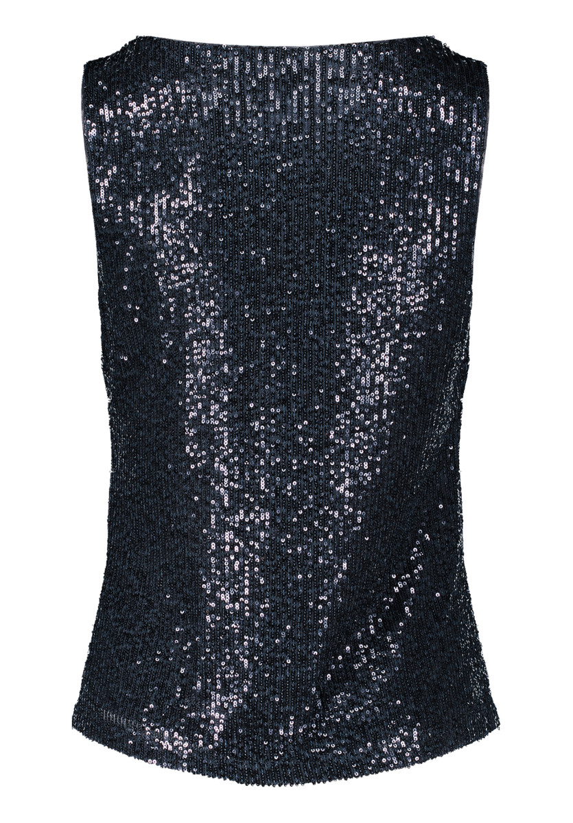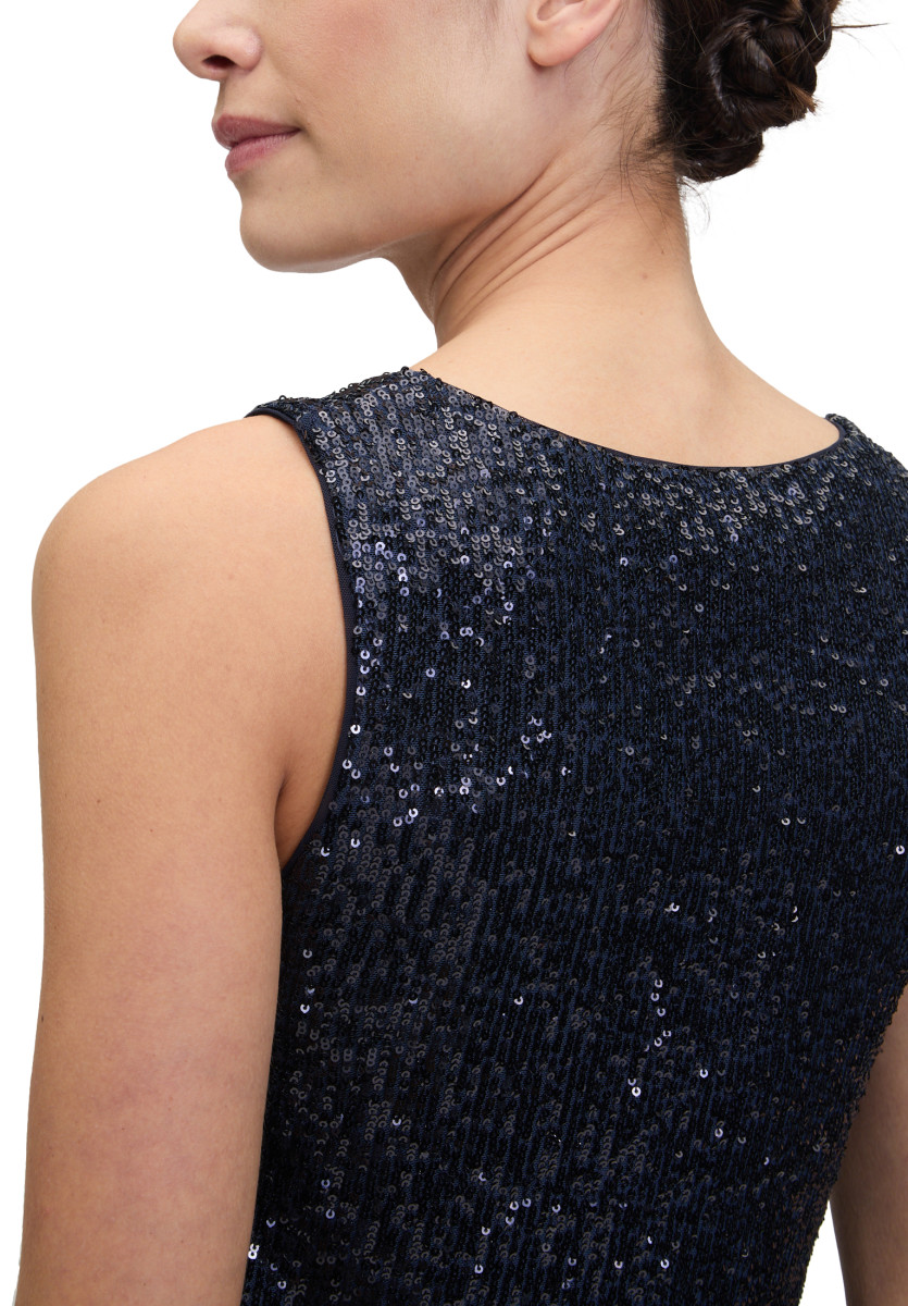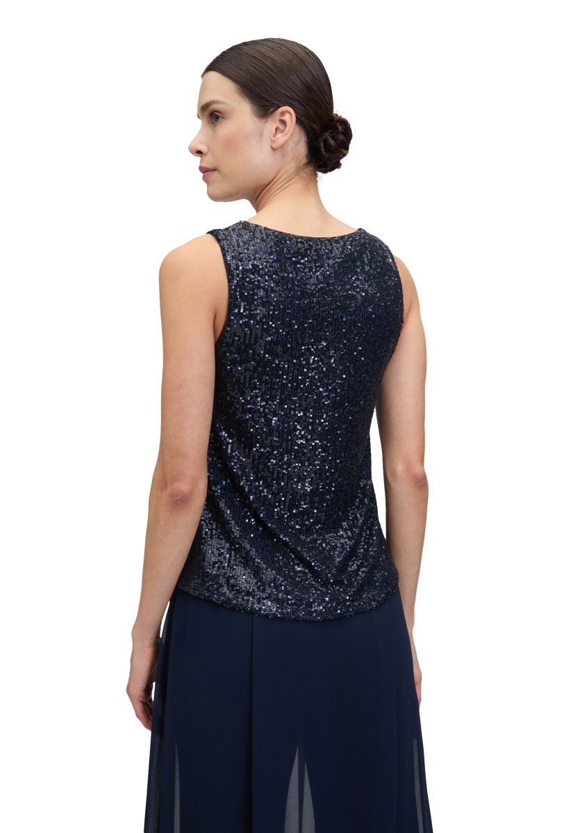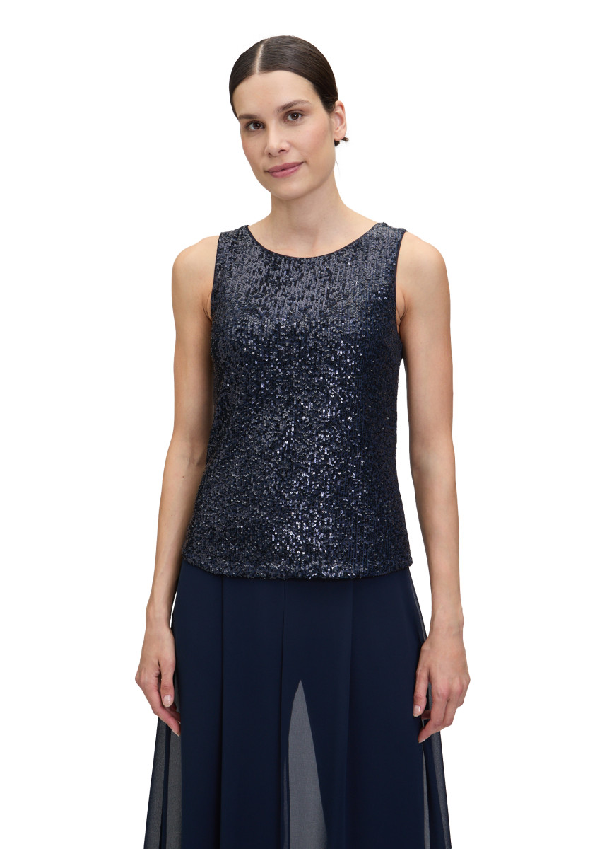 Die Bluse hat eine figurbetonte Passform und eine Gesamtlänge von 62 cm, wobei die Länge ab Taille 20 cm beträgt. Sie ist ärmellos und besitzt einen klassischen Rundhalsausschnitt. Auf einen Verschluss wurde bewusst verzichtet, was den cleanen Look unterstreicht. Das Design ist unifarben gehalten. Das Futter besteht aus 92 % Polyamid und 8 % Elasthan.
