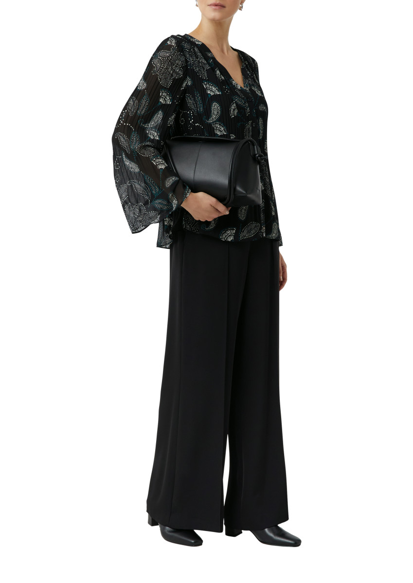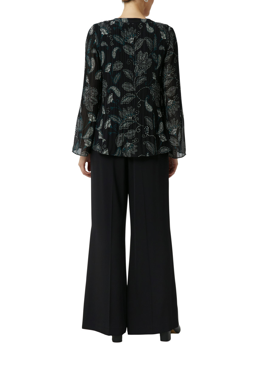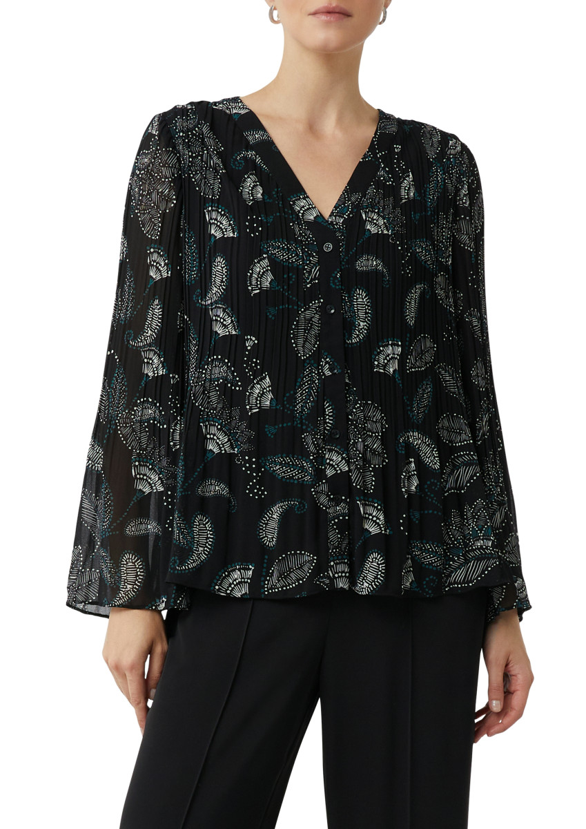 Die plissierte Chiffonbluse mit femininem V-Ausschnitt vereint Eleganz und Leichtigkeit auf bezaubernde Weise. Der luftige Chiffon-Stoff schmeichelt Ihrer Figur, während die feine Plissee-Veredelung für Struktur sorgt. Der ausgestellte Saum verleiht dem halblangen Oberteil eine schwungvolle Silhouette. Dank des floralen All-over-Prints wird die Bluse zum stilvollen Hingucker. Mit Jeans gestylt entsteht ein lässiger Look, zur Businesshose wirkt sie elegant und bürotauglich.
