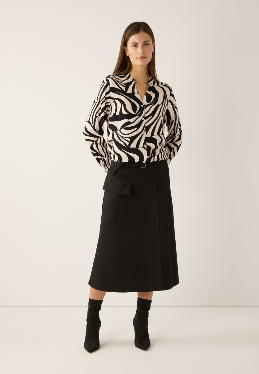 Lockere, blusige Form | Kleiner Stehkragen | Durchgehende Knopfleiste | Lange Ärmel mit gesmokter Manschette | Fließende Qualität