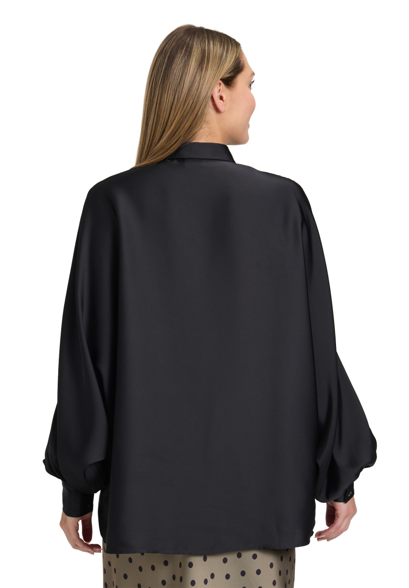 Oversized Passform | Gesamtlänge: 72 cm | Länge ab Taille: 30 cm | Langarm | Rundhals-Ausschnitt | Umlegekragen | Polyester | Knopfleiste | Uni