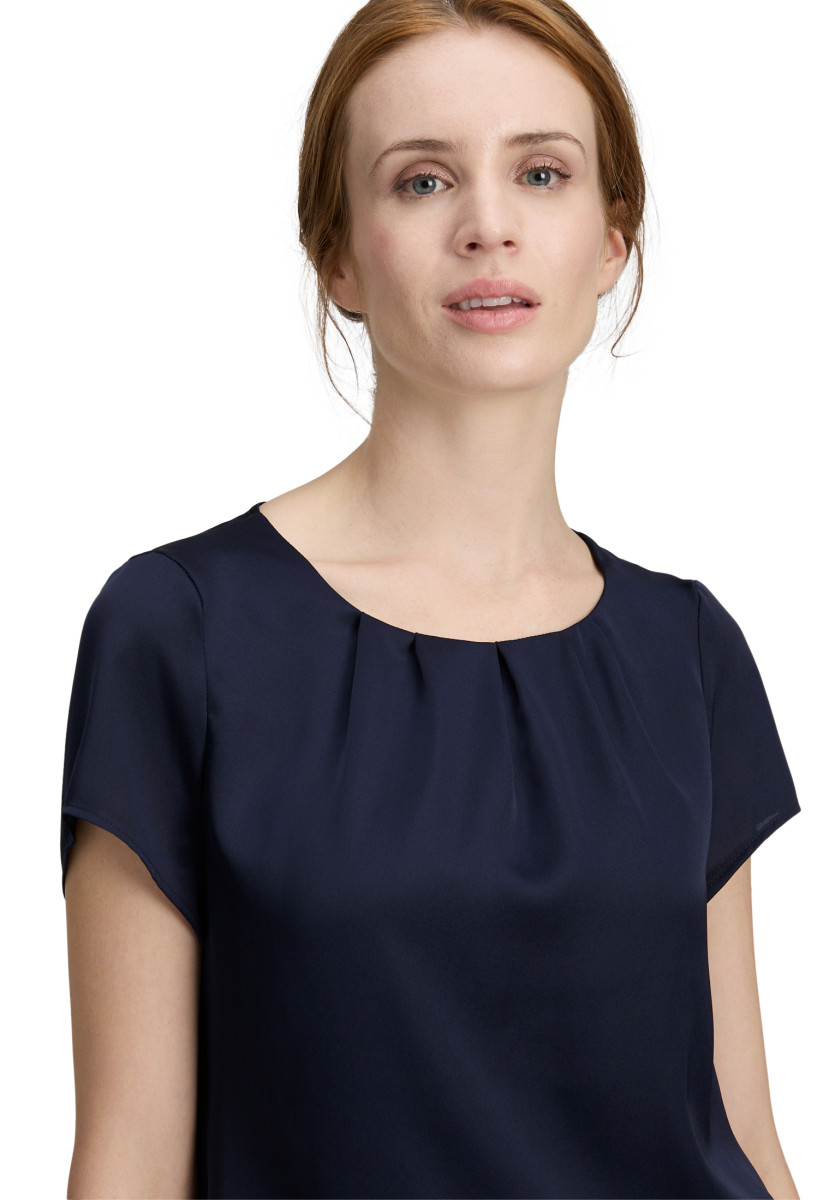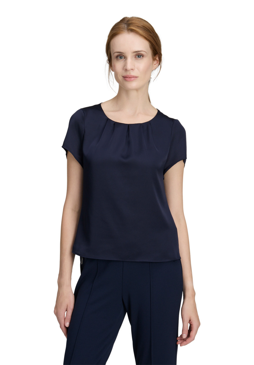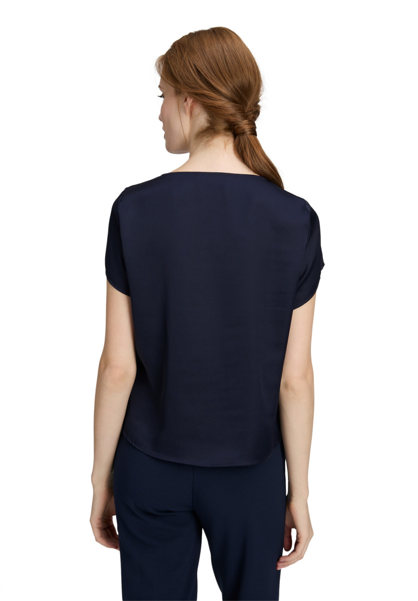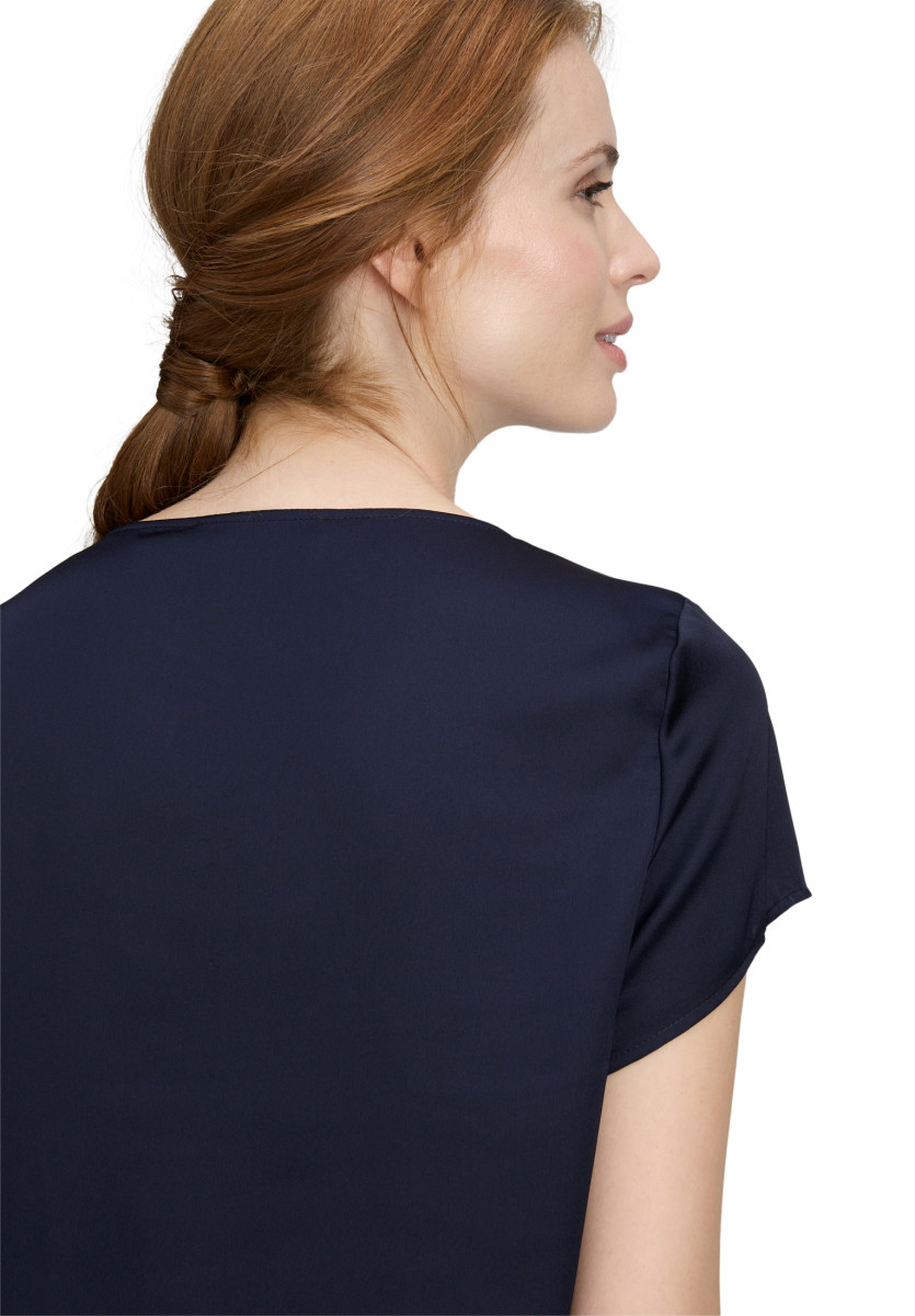 Lockere Passform | Kurzarm | Rundhalsausschnitt | Satin | Uni | Hinten länger | Abgerundeter Saum