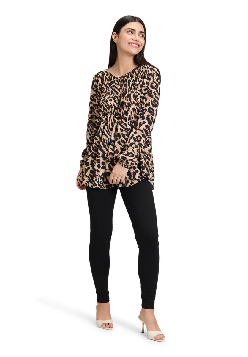 Passform: Figurumspielend | Gesamtlänge: 72 cm | Ärmellänge: Langarm | Ausschnittform: Rundhals-Ausschnitt | Materialart: Polyester | Verschluss: Knopfschlinge hinten | Muster: Animal