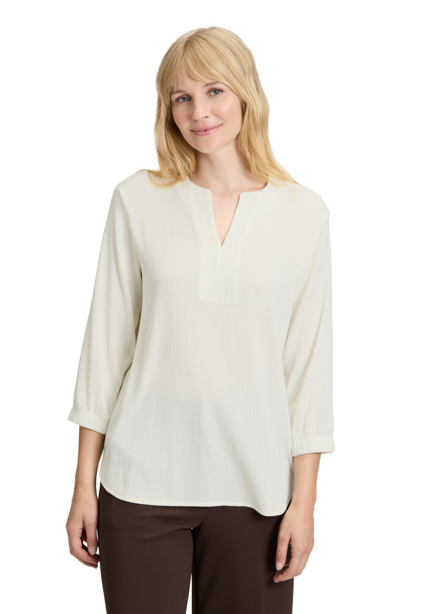 Passform | Figurumspielend | Gesamtlänge | 68 cm | Ärmeldetail | Mit Raffung | Ärmellänge | 3/4 Arm | Ausschnittform | V-Ausschnitt | Muster | Uni