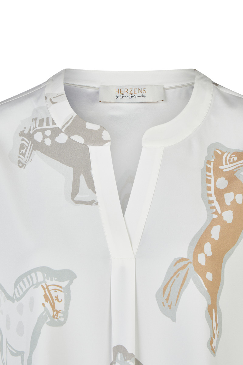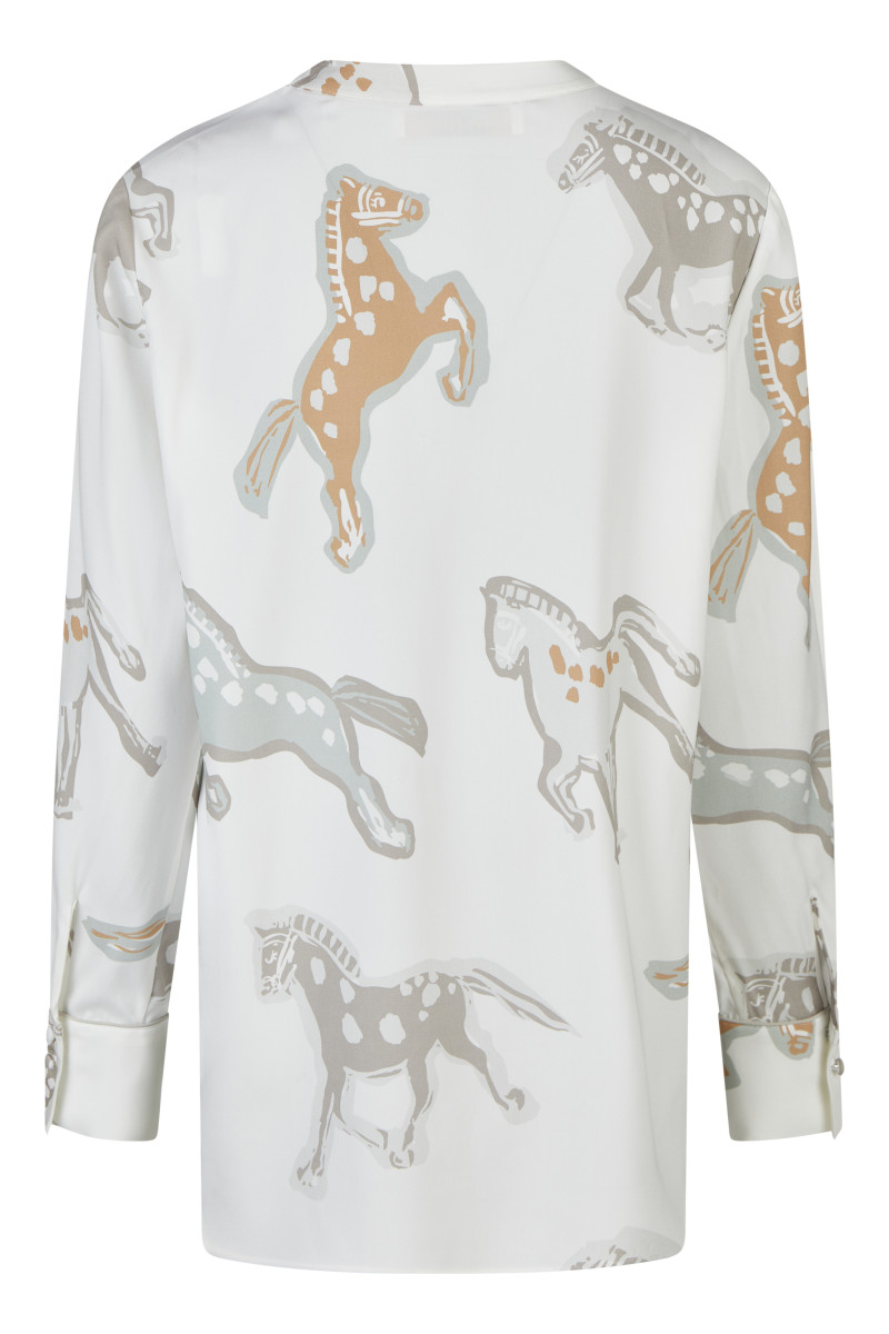 Tunika-Ausschnitt | Langarm | Allover-Pferdemuster | Abgerundeter Saum | Aus Seide