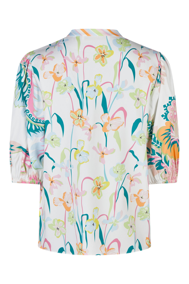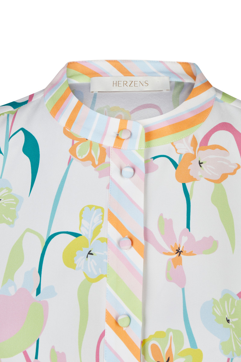 Leichter Stehkragen | Halbarm | Halbe Knopfleiste | Allover-Muster | Aus Seide
