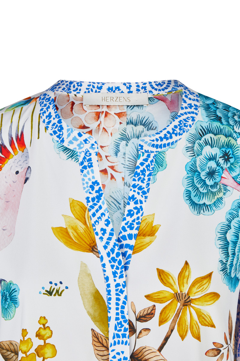 Tunika-Ausschnitt | Langarm | Allover-Print | Abgerundeter Saum | Aus Seide