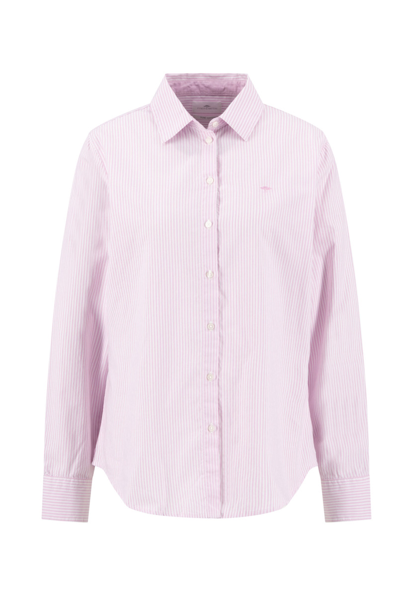 Mit ihrer feinen Streifenstruktur und dem klassischen Schnitt bringt diese Bluse frische Eleganz in deinen Alltag.